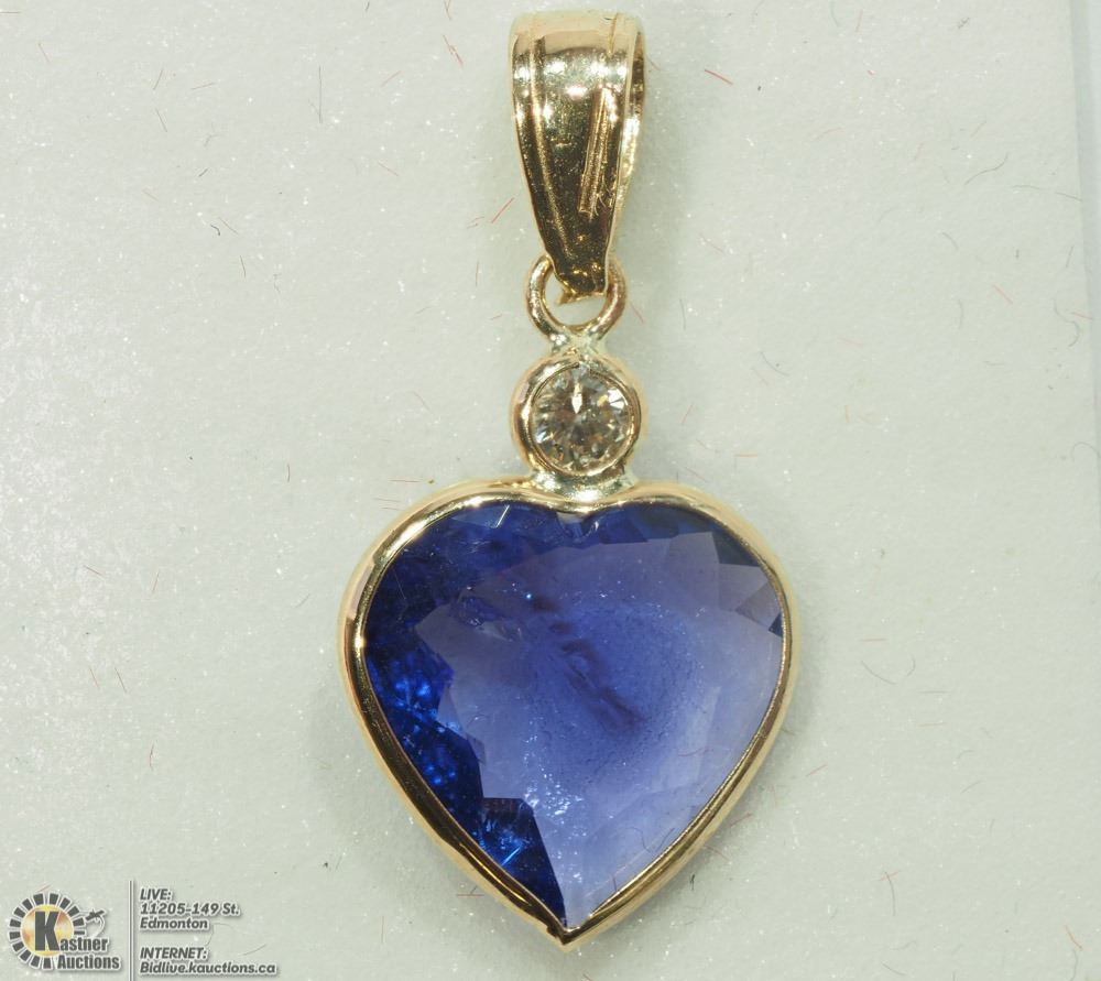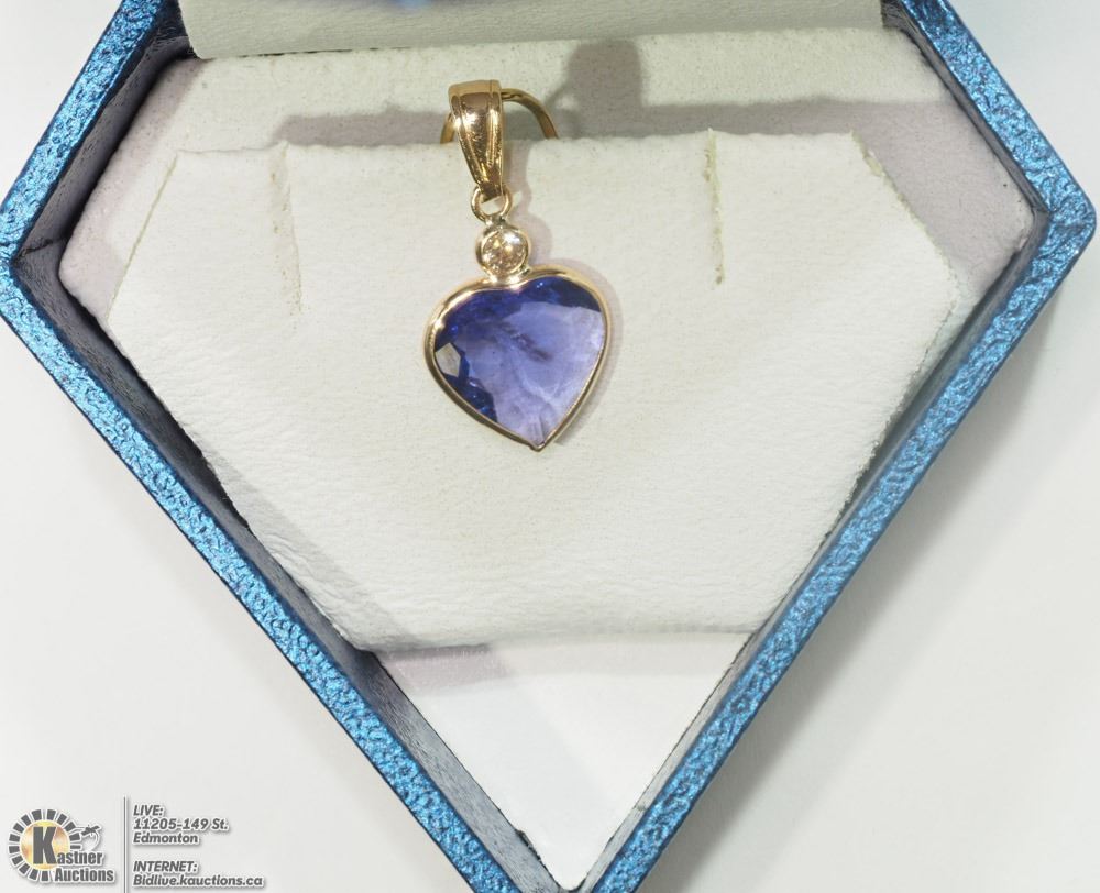 14K YELLOW GOLD TANZANITE(2.40CT) & DIAMOND HEART-SHAPED PENDANT. W/ COA - SUGGESTED REPLACEMENT VALUE $2,850.00