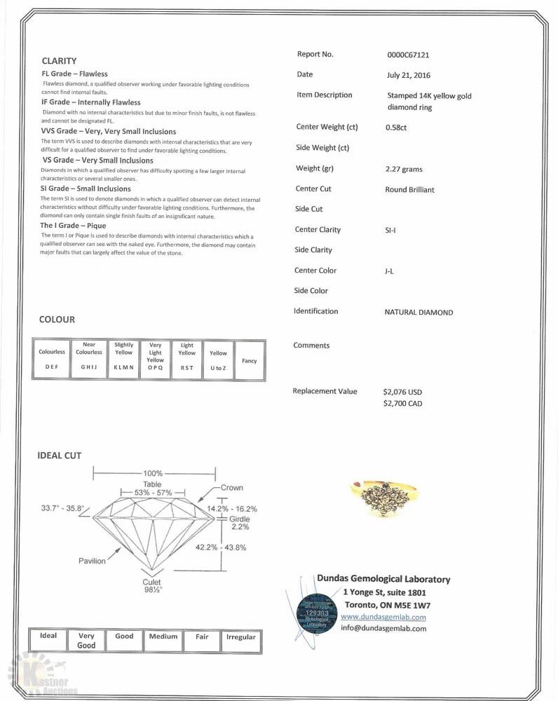 14KT YELLOW GOLD DIAMOND (0.58CT) RING ACCENTED BY 23 SINGLE CUT DIAMONDS W/ COA - SUGGESTED REPLACEMENT VALUE $2,700.00