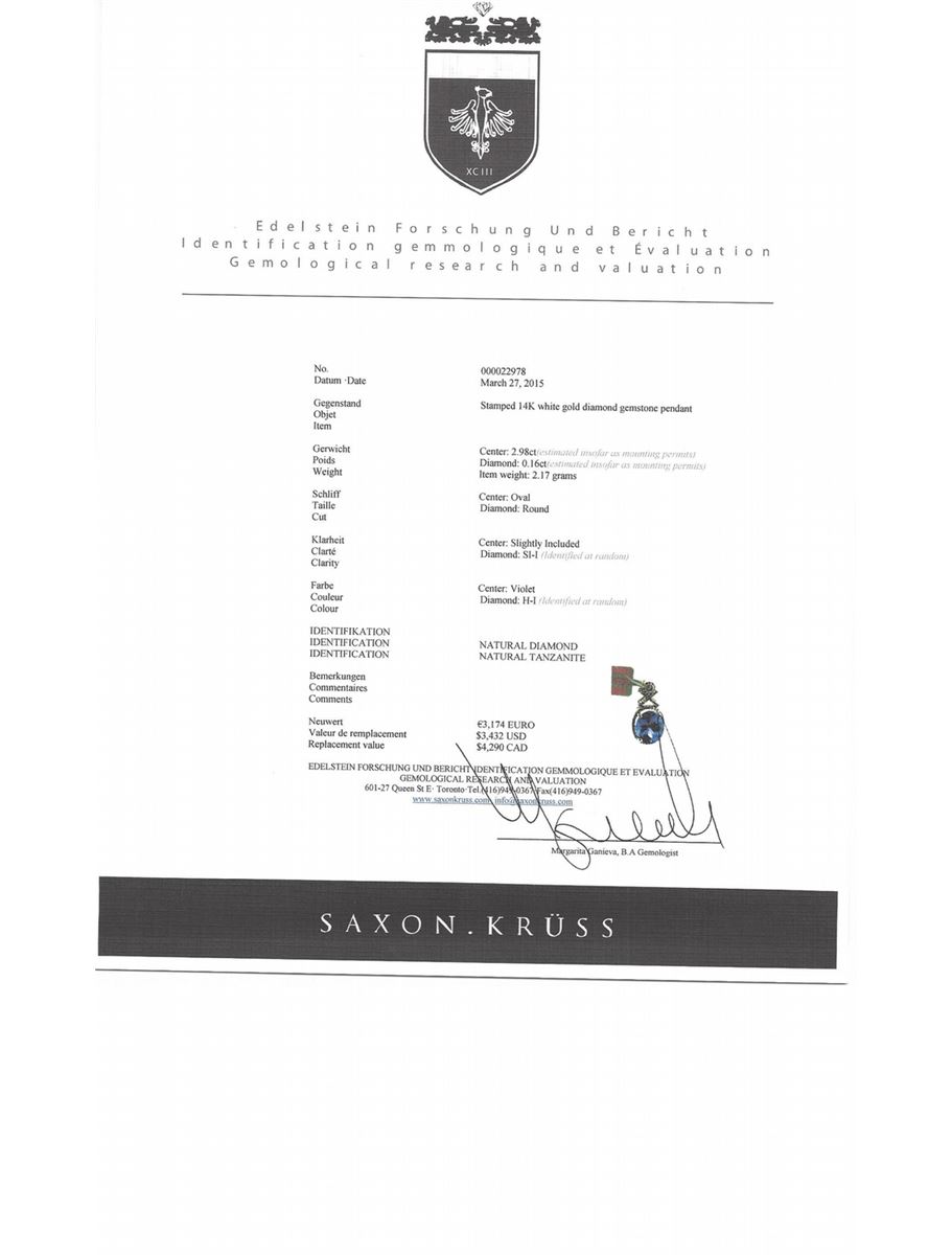 PENDANT SUGGESTED REPLACEMENT VALUE $4290.00