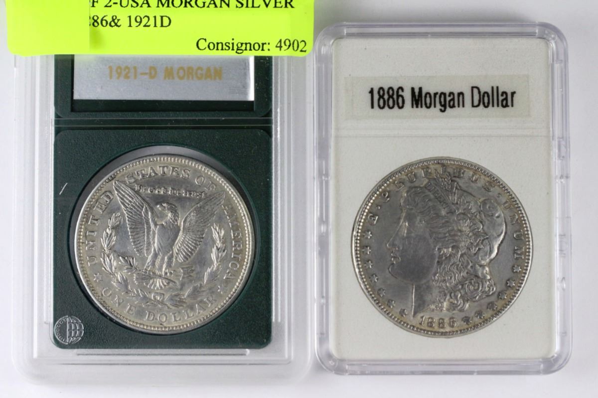 #14-LOT OF 2-USA MORGAN SILVER $1 INCL.1886& 1921D