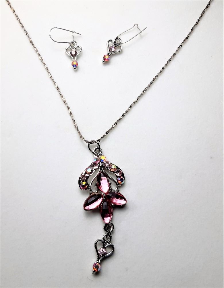 CRYSTAL PENDANT ON CHAIN WITH MATCHING EARRINGS. JEWELRY