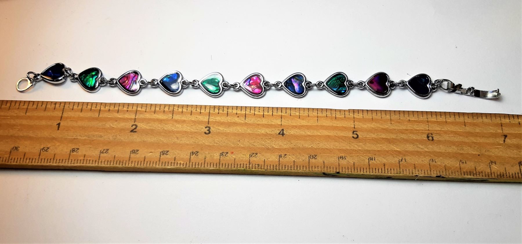 HEART SHAPED ABALONE BRACELET, 7" IN LENGTH, JEWELLERY