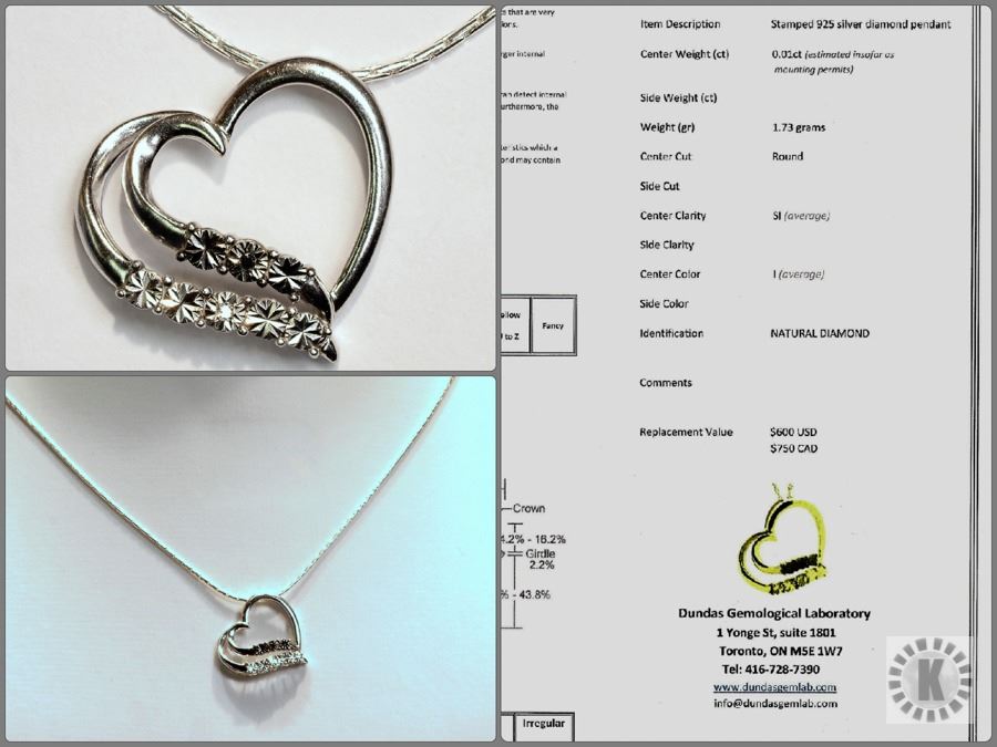 STERLING SILVER BLACK & WHITE DIAMOND HEART NECKLACE - SUGGESTED REPLACEMENT VALUE $750.00