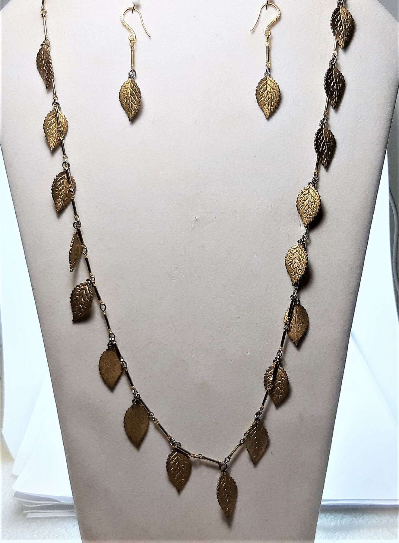 LEAVES AND MATCHING DROP EARRINGS ON NICKLE FREE WIRES. JEWELRY