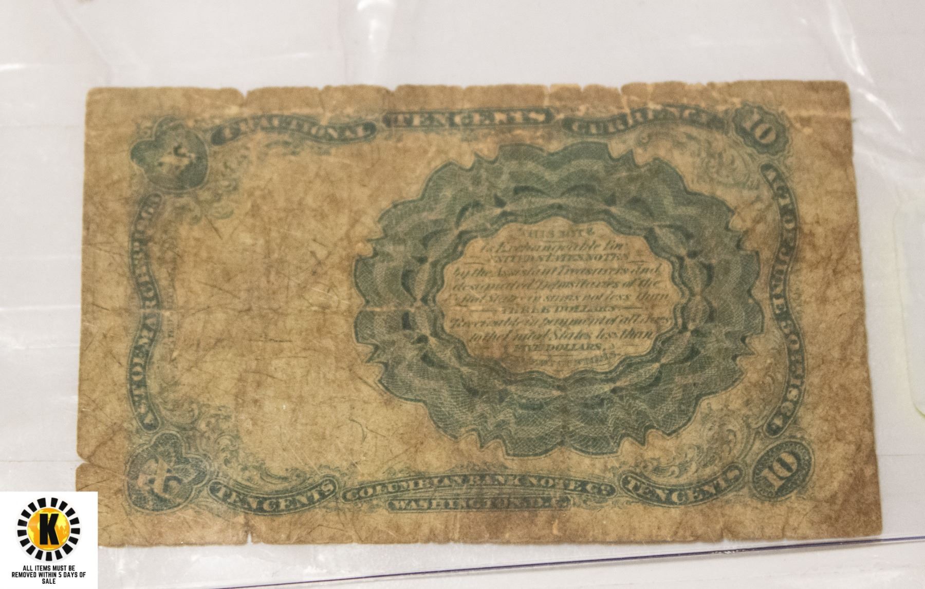 145)1874 US 10 CENT FRACTIONAL CURRENCY