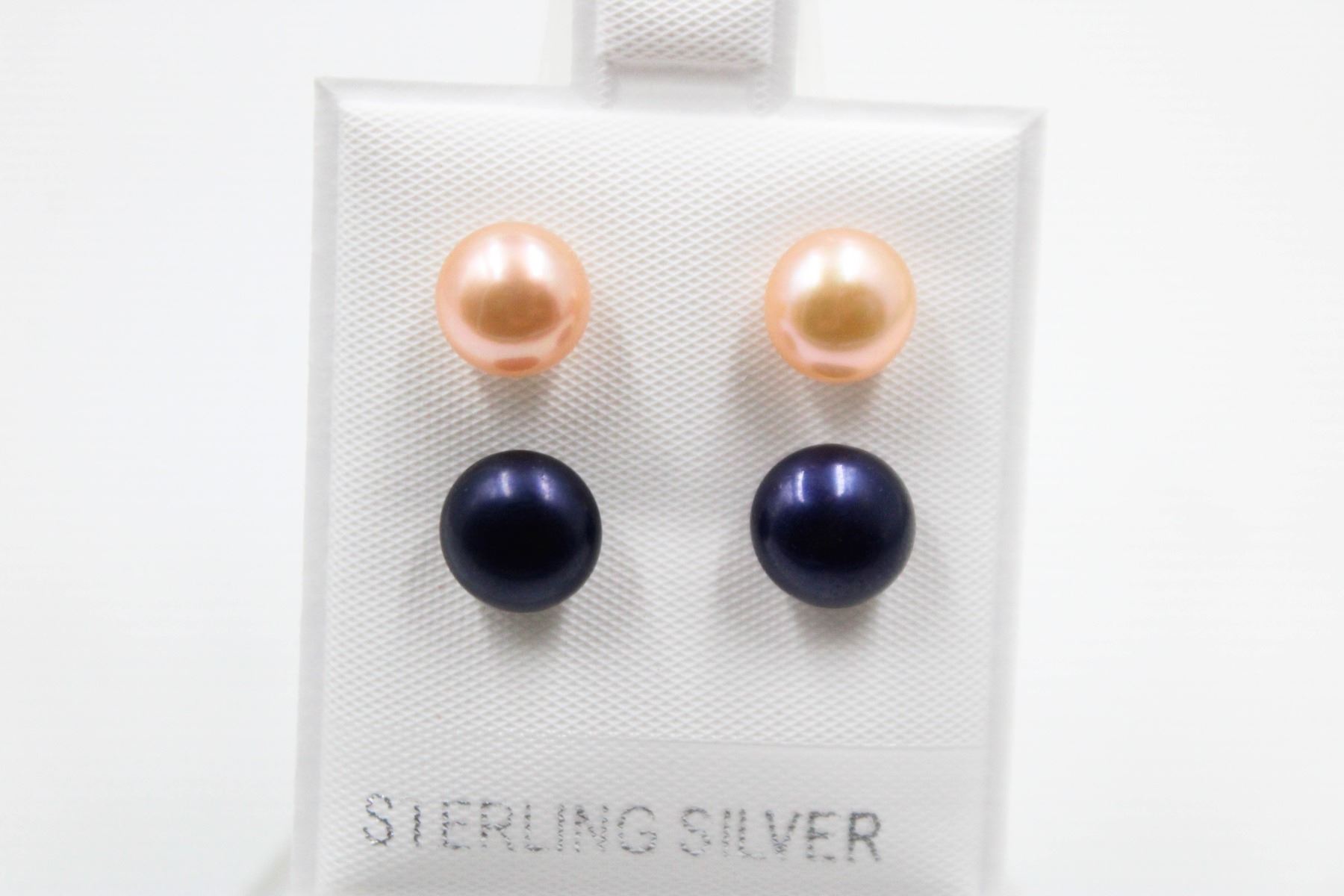 .925 STERLING SILVER/ 7.5-8MM /PINK & BLACK /2PAIRS