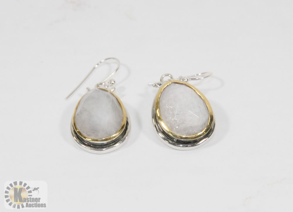 149 - JM37 - STERLING SILVER GOLD PLATED MOONSTONE EARRINGS. JEWELRY