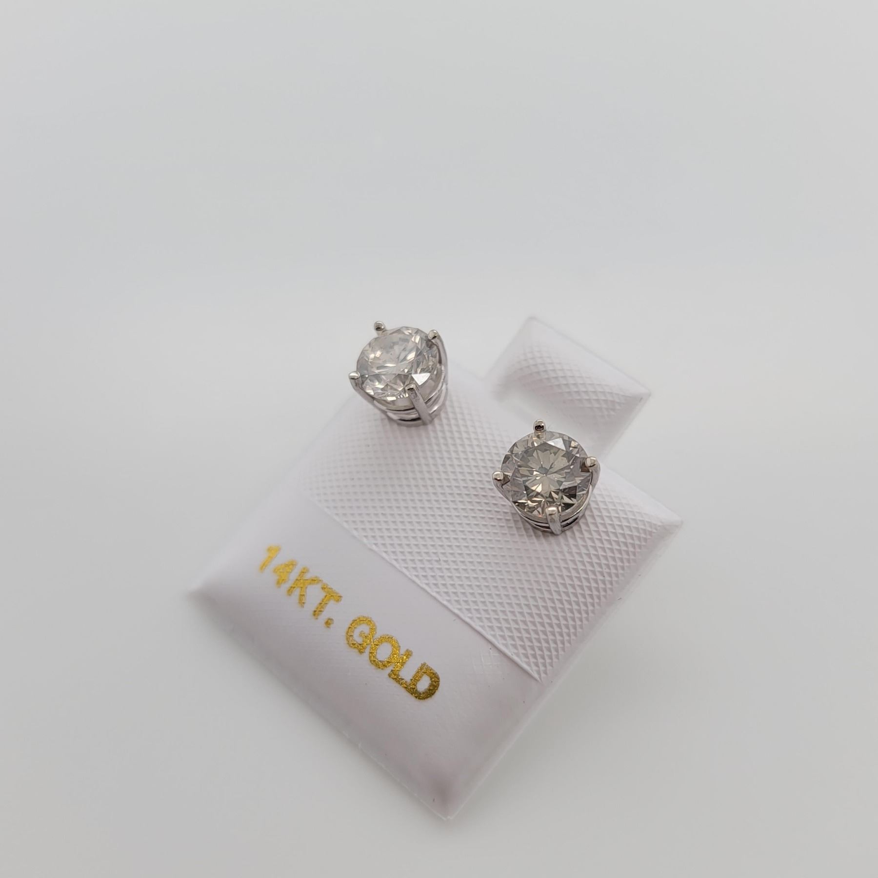 14K WHITE GOLD DIAMOND (1.52CT,I2-3,G-H) EARRINGS (~WEIGHT 1.04G), MADE IN CANADA ATTENTION BOTH EARRINGS HAVE A DIFFERENT STONE TONE.