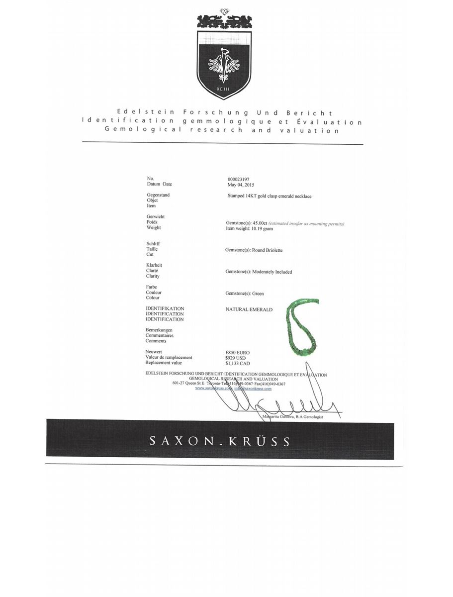 14K GOLD CLASP EMERALD (45.5ct) NECKLACE APPRAISED