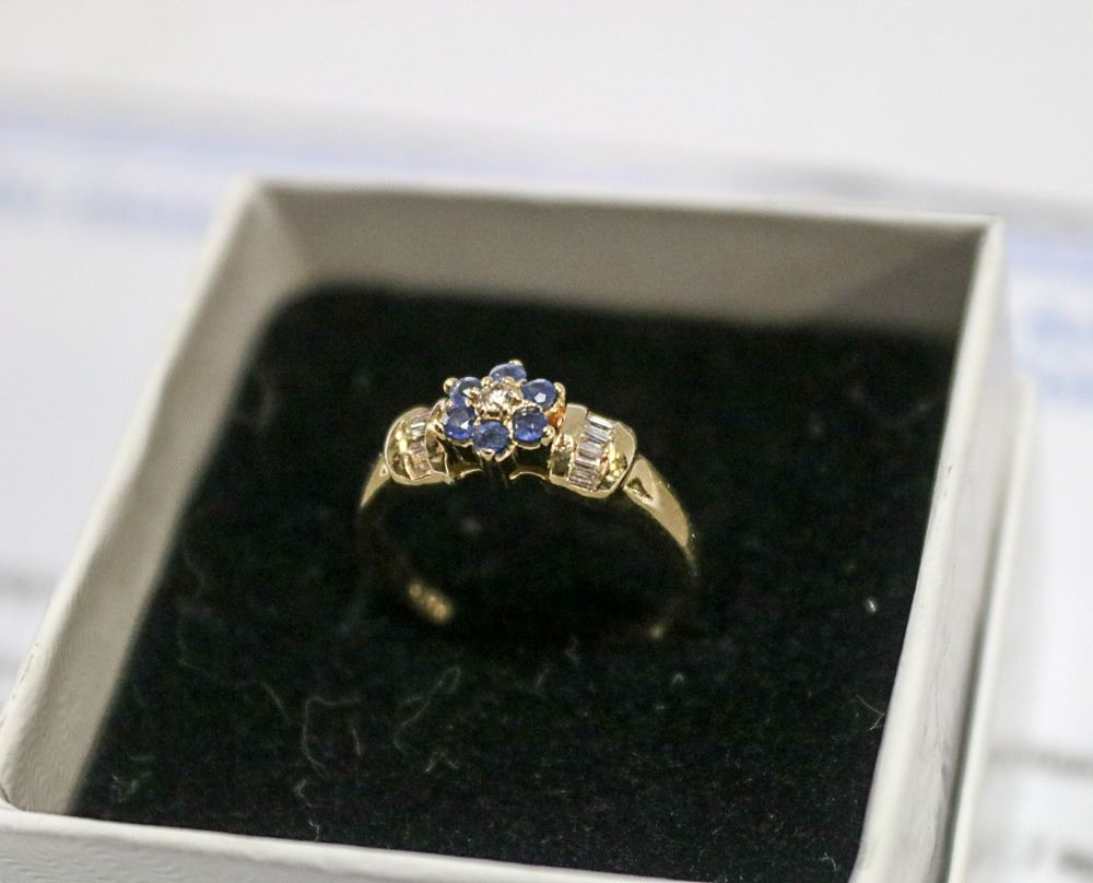 $1800.00 REPLACEMENT APPRAISAL BY MGI GEMLAB (TORONTO) 14K YELLOW GOLD WITH .24 TCW SAPPHIRES AND .26 TCW DIAMONDS. 2.4G TOTAL WEIGHT.