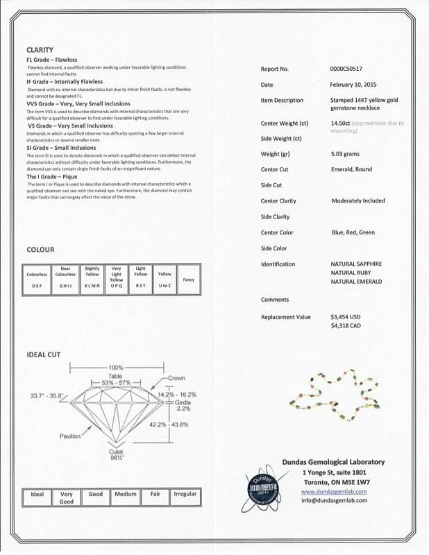 NECKLACE - W/ APPRAISAL, SUGGESTED REPLACEMENT VALUE $4,318.00