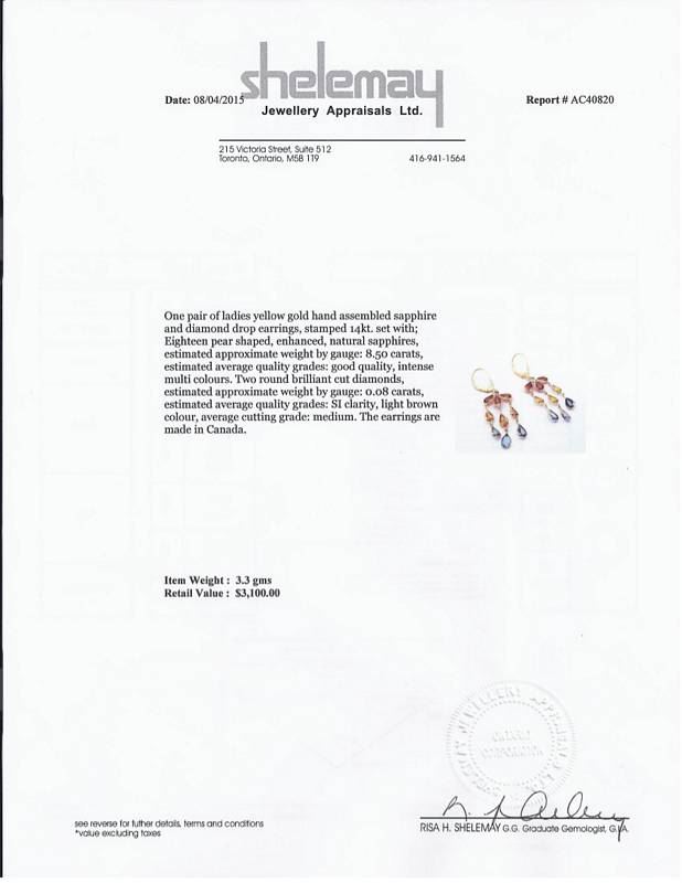 EARRINGS - W/ APPRAISAL, SUGGESTED REPLACEMENT VALUE $3,100.00