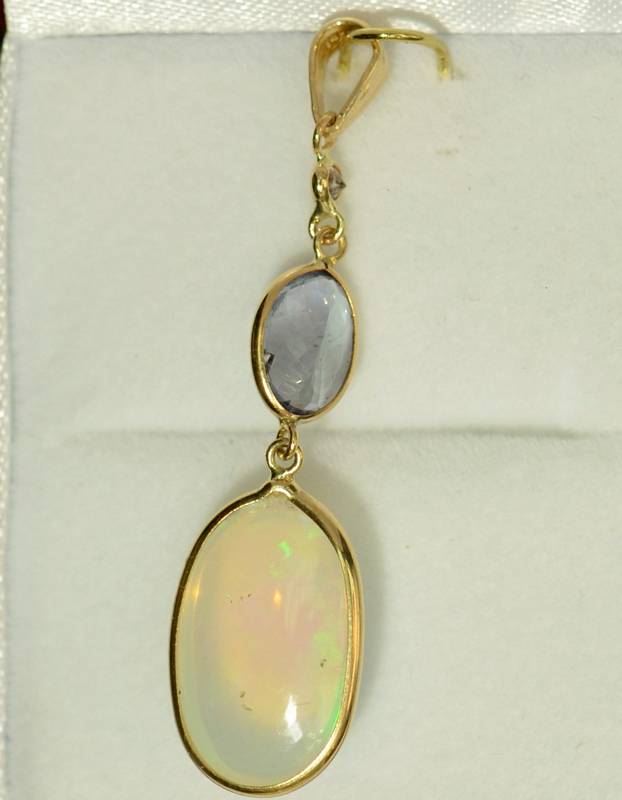 14K GOLD OPAL, TANZANITE & DIAMOND EARRINGS