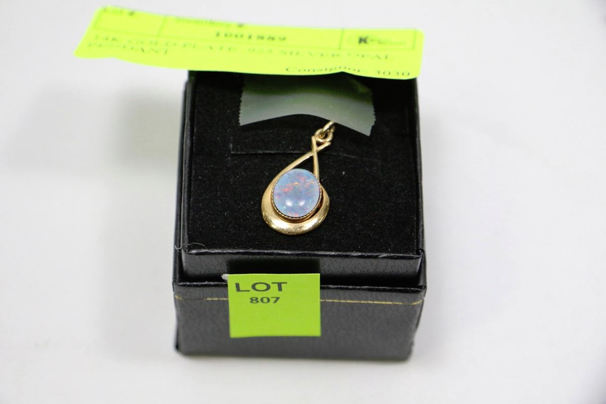 14K GOLD PLATE .925 SILVER OPAL PENDANT