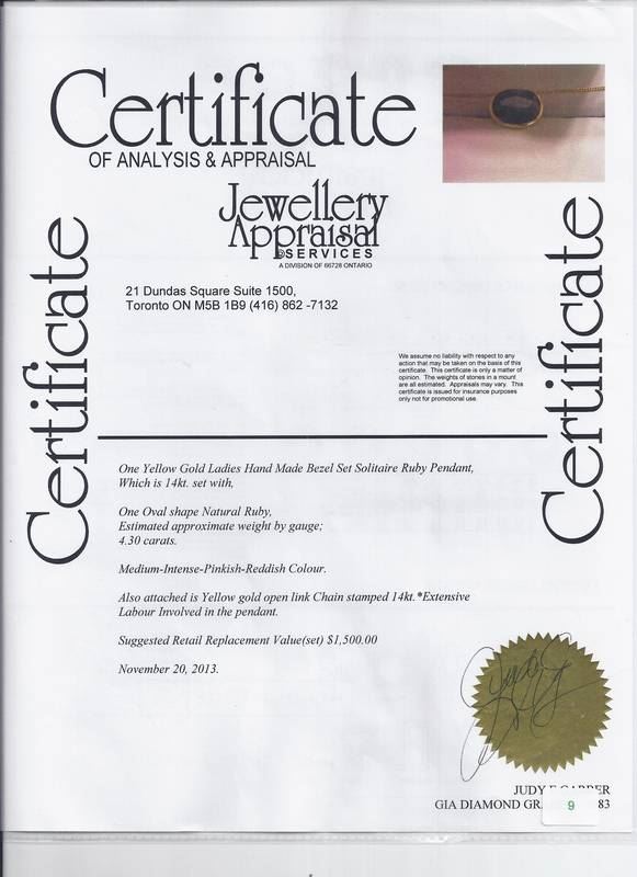 COMES WITH APPRAISAL SUGGESTED REPLACEMENT VALUE $1500