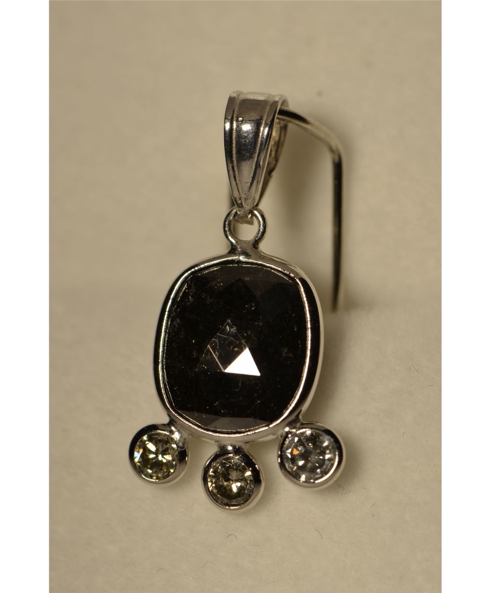 White Gold; Black Diamond: 1.60 cts, Modified Rectangular Cut; White Diamond: 3 Diamonds, 0.30 cts, Round Brilliant Cut; with certificate