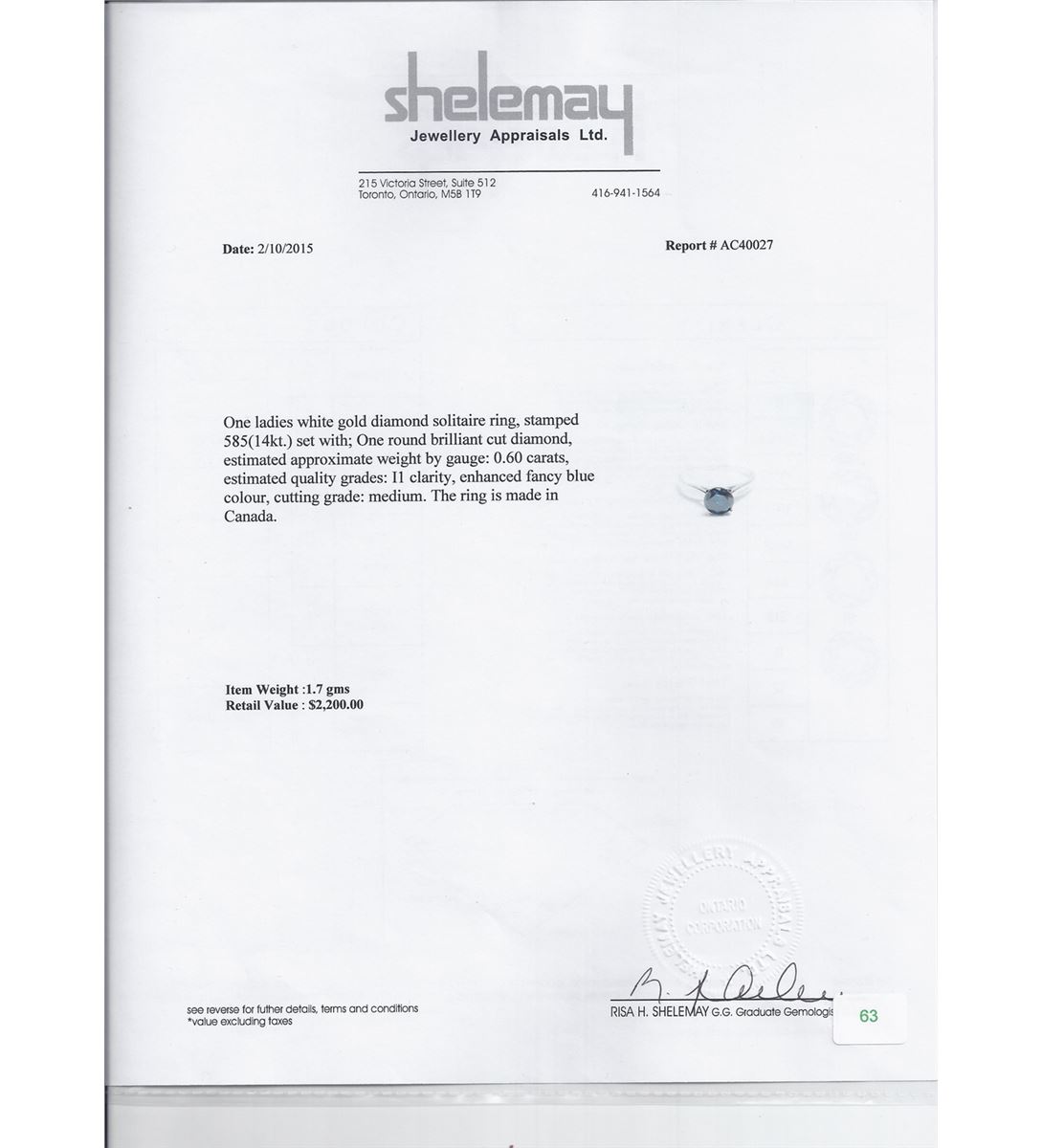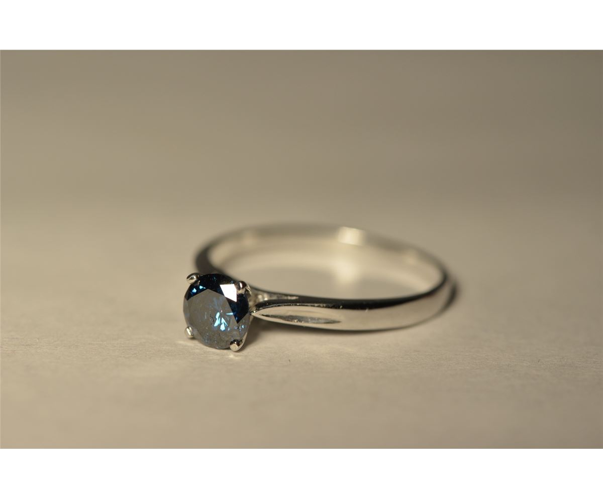 White Gold; Blue Diamond: 0.60 cts, Round Cut; approx. 1.7 g; Size 5.75; with certificate