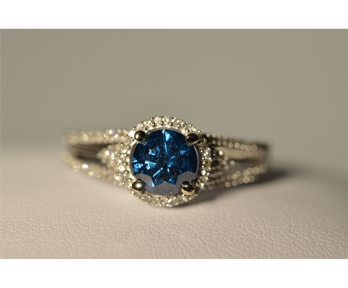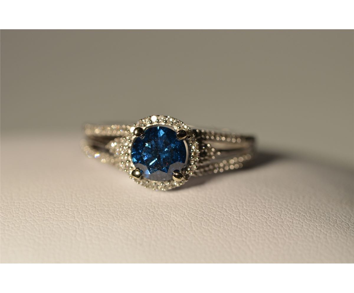 14K Gold Blue/White Diamond Ring MSRP $5800