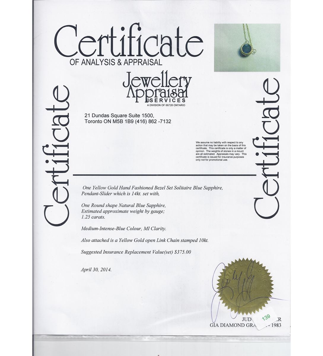 1.25 cts, Round Cut, with 10K Gold Chain, with certificate