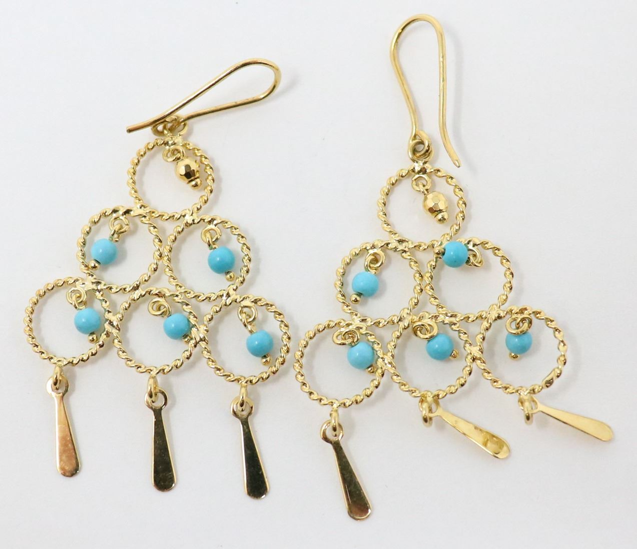 14K ITALIAN GOLD FANCY EARRINGS WITH BLUE BEADS, S