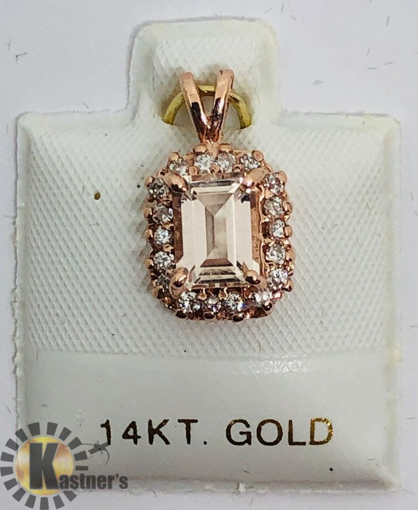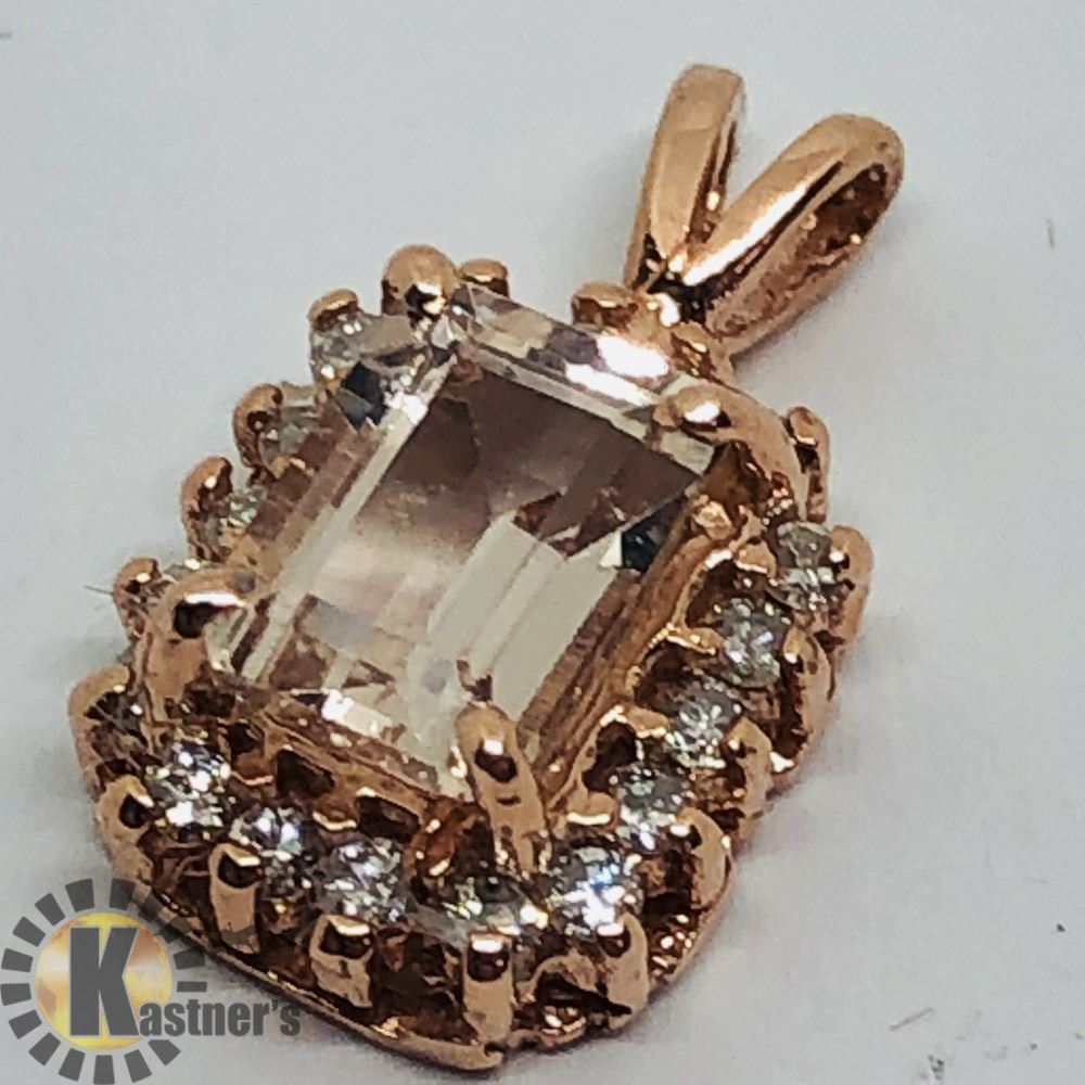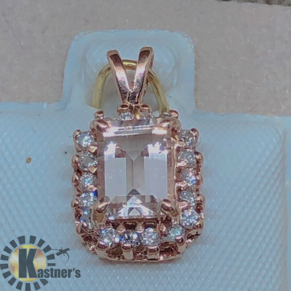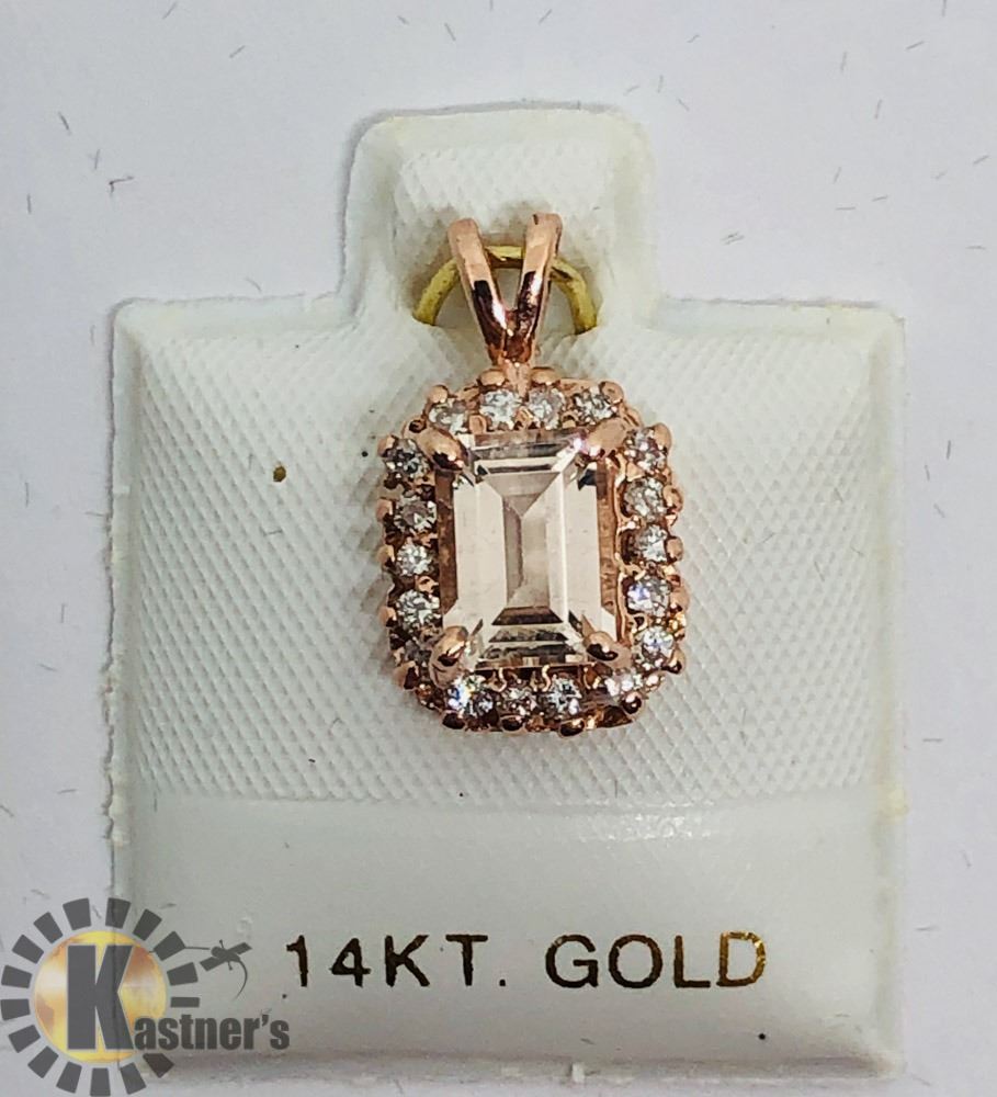 S. NO. 78 - CR162;CODE 11510 - P800: 14K ROSE GOLD MORGANITE (1CT) DIAMOND (91-I3,G-H,0.2CT) PENDANT