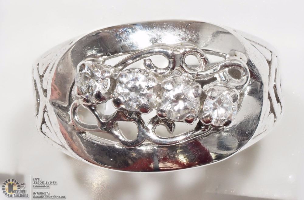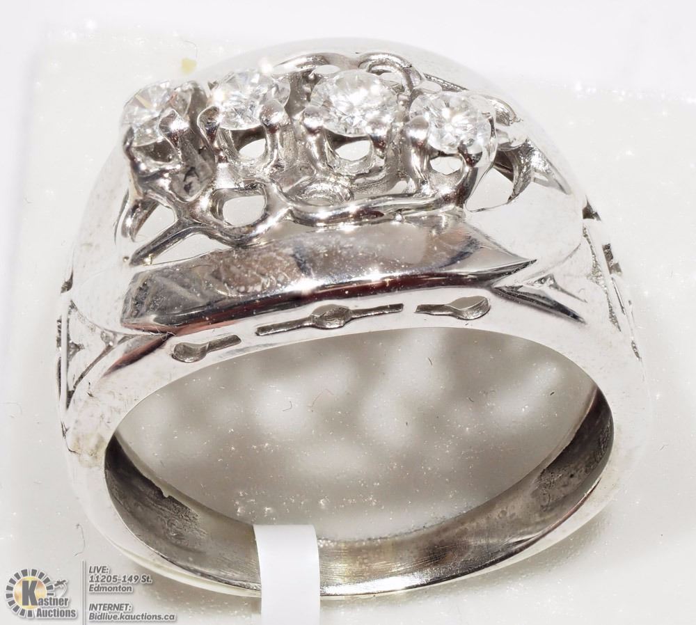 (34 - AC4: R2300) 14K WHITE GOLD 4 DIAMONDS(0.50CT) MEN'S RING. W/ COA -SIZE 6. SUGGESTED REPLACEMENT VALUE $5,000.00