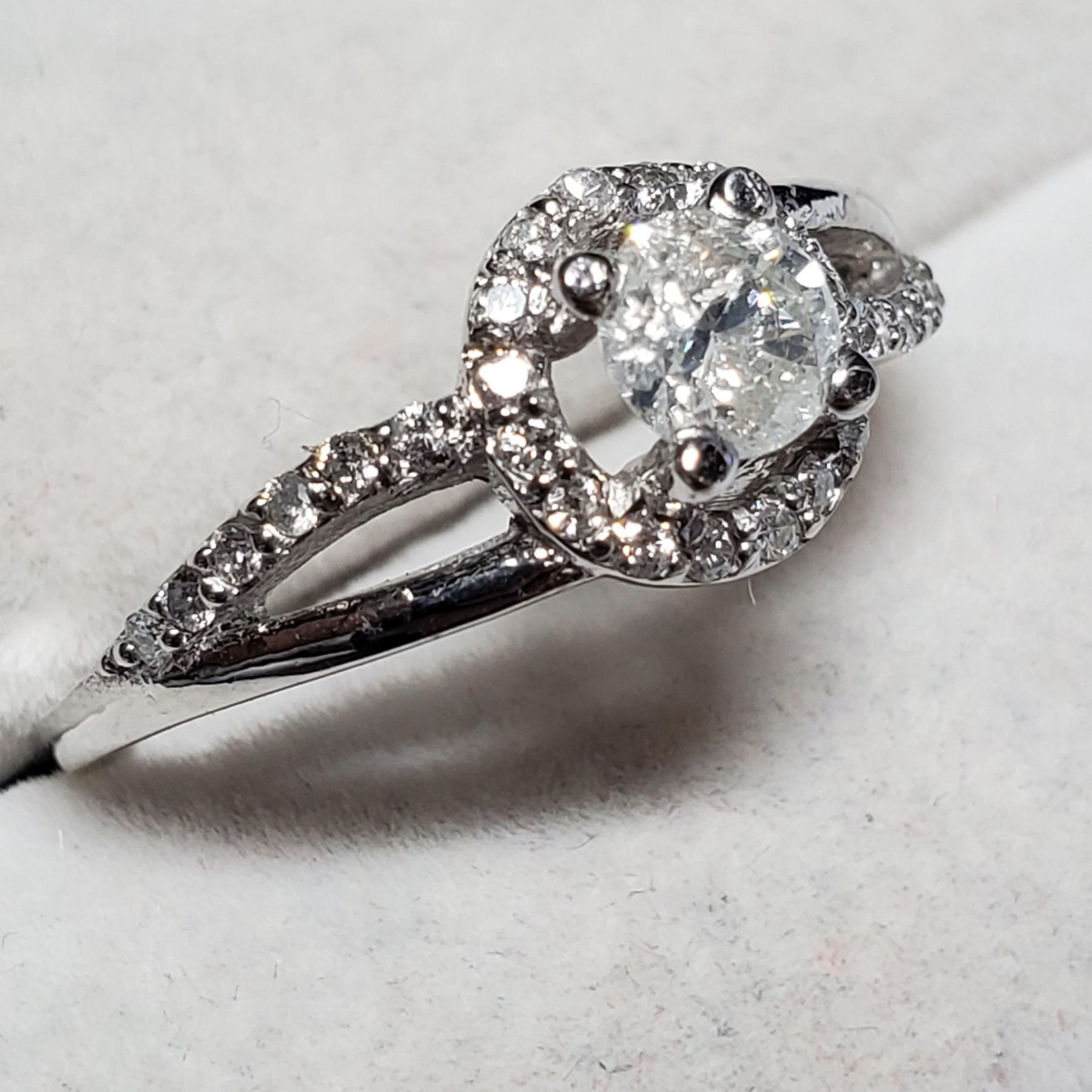 S. NO. FW06-58: 14K WHITE GOLD DIAMOND(0.4 + 0.25CT) COLOR G-H, CLARITY I-1 TO I-2 RING (~SIZE 6). MADE IN CANADA. JEWELRY.
