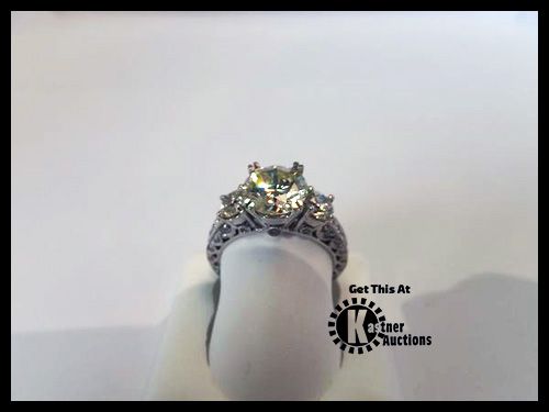 14K WHITE GOLD DIAMOND TRINITY RING FILAGREE STYLE