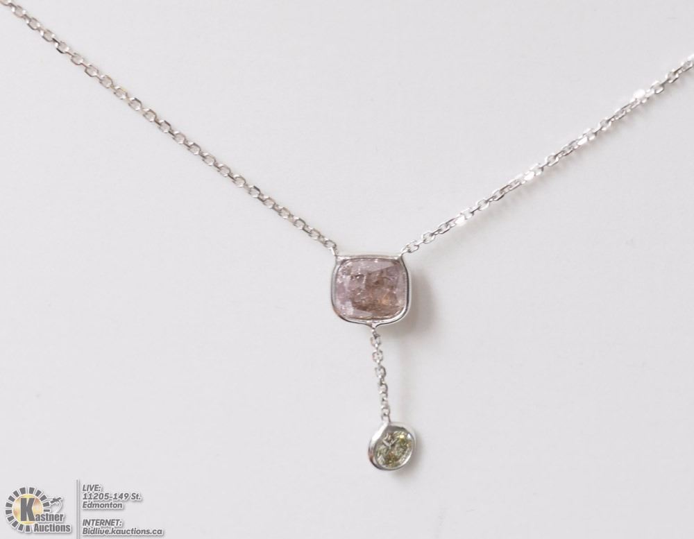ITEM#42 - AC3: 14K WHITE GOLD PINK DIAMOND(0.80CT) & WHITE DIAMOND(0.12CT) NECKLACE. W/ COA - SUGGESTED REPLACEMENT VALUE $3,567.00