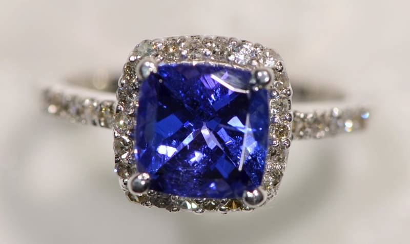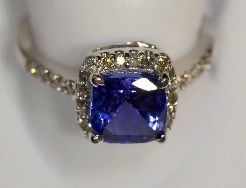 14K WHITE GOLD TANZANITE(1.9CT) & DIAMOND(0.32CT)