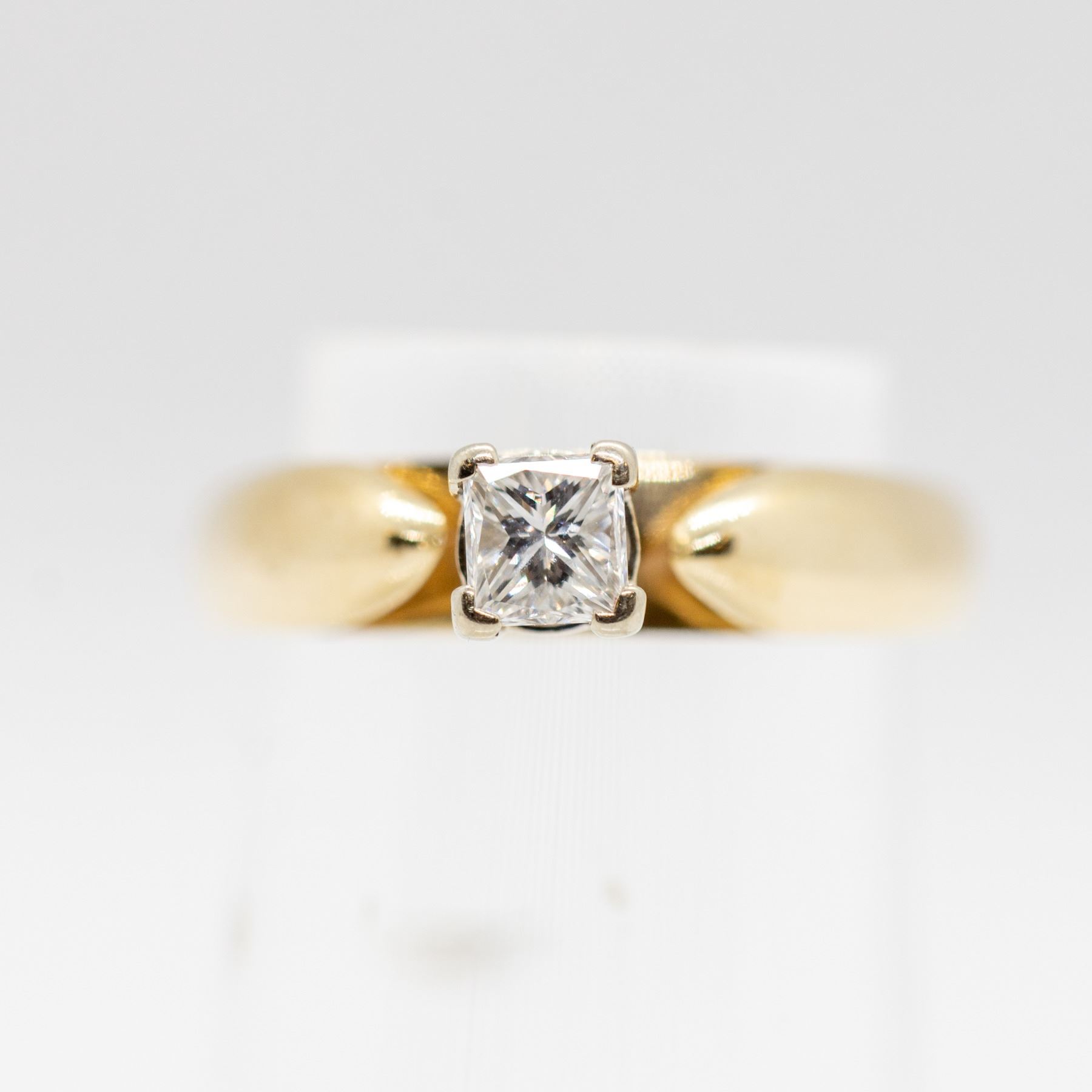 FANCY CUT, MEASURES 3.98-3.79 X 3.12MM CLARITY GRADE VS-2 COLOUR GRADE IS F POLISH AND SYMMETRY ARE GOOD CARAT WEIGHT 0.40 TOTAL WEIGHT 4.20 GRAMS. COMES WITH CERTIFICATE OF AUTHENTICITY, APPRAISED VALUE OF $4500 SIZE 4.5, RING IS RESIZABLE.