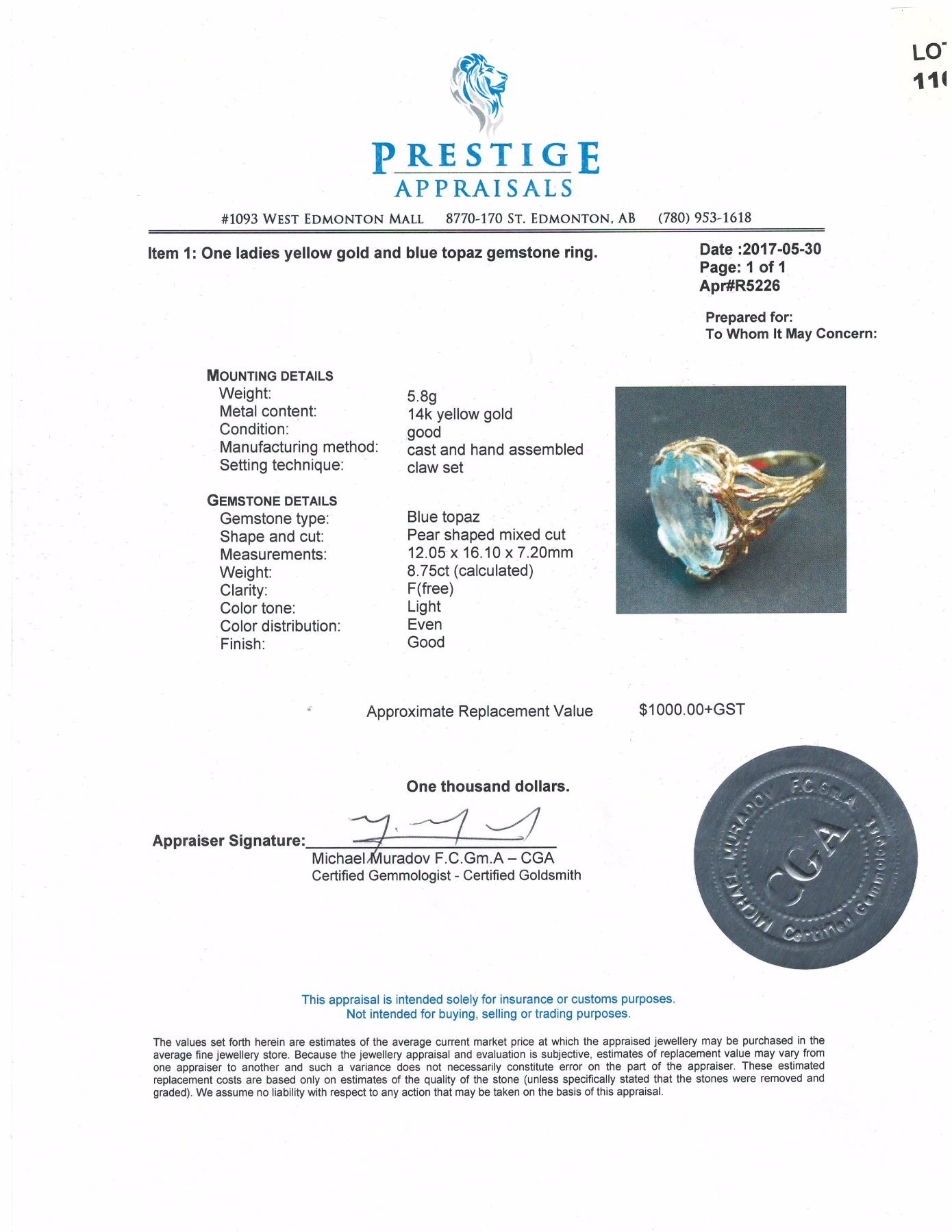FROM LOCAL APPRAISER. SUGGESTED REPLACEMENT VALUE $1000.00 SIZE 6