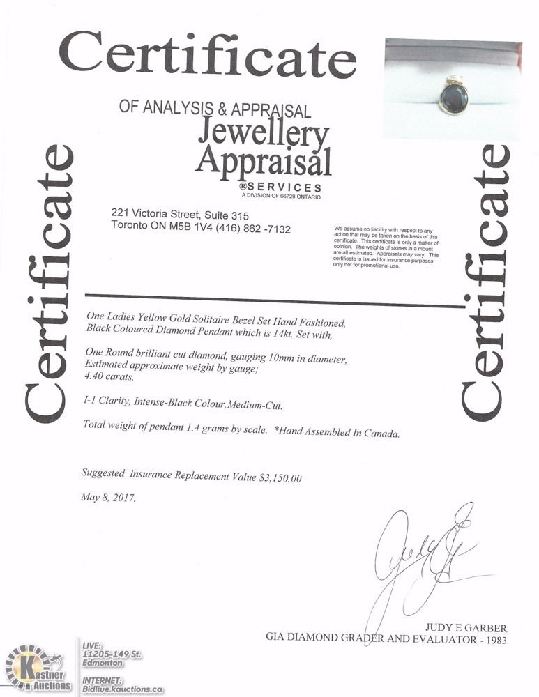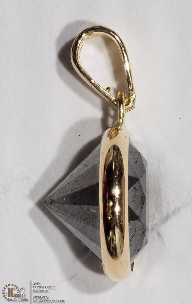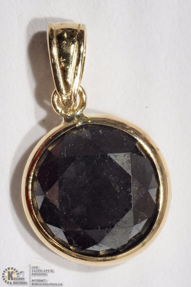 (12 - AC4: P1000) 14K YELLOW GOLD BLACK DIAMOND(4.40CT) SOLITAIRE PENDANT. W/ COA - SUGGESTED REPLACEMENT VALUE $3,150.00