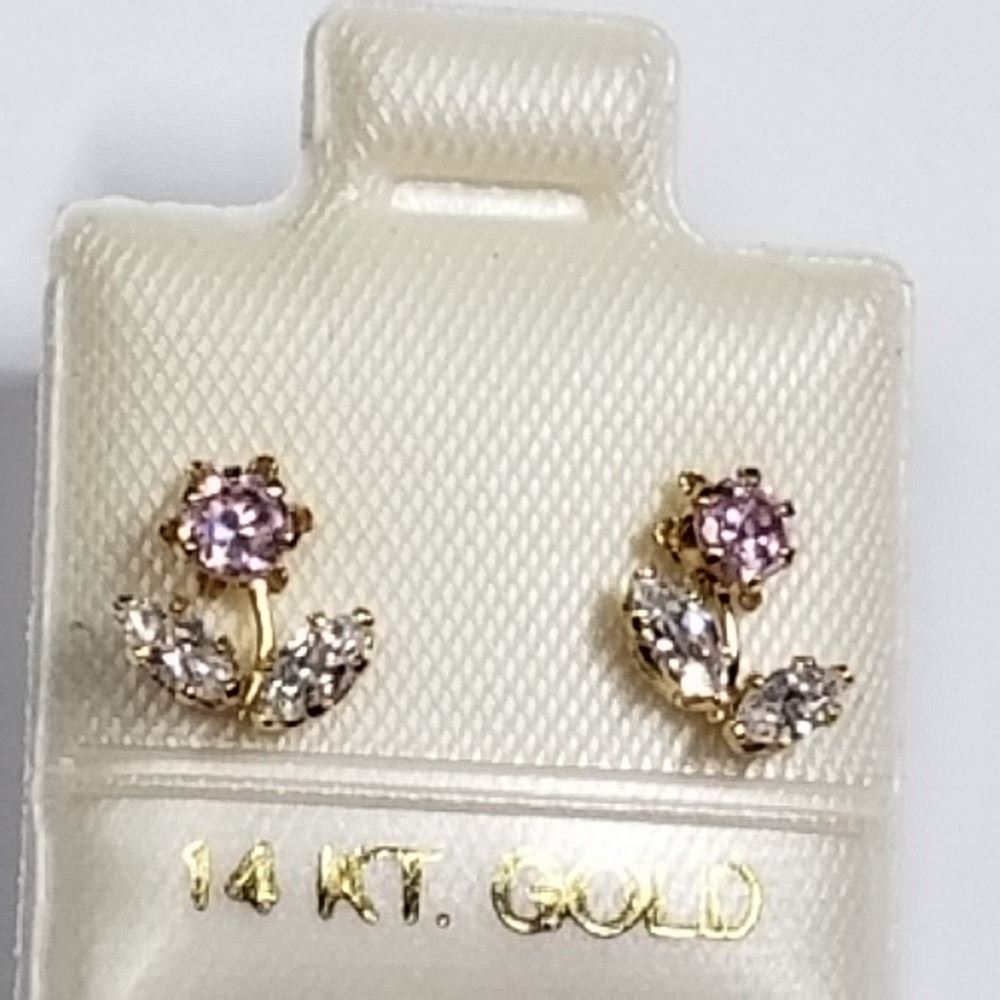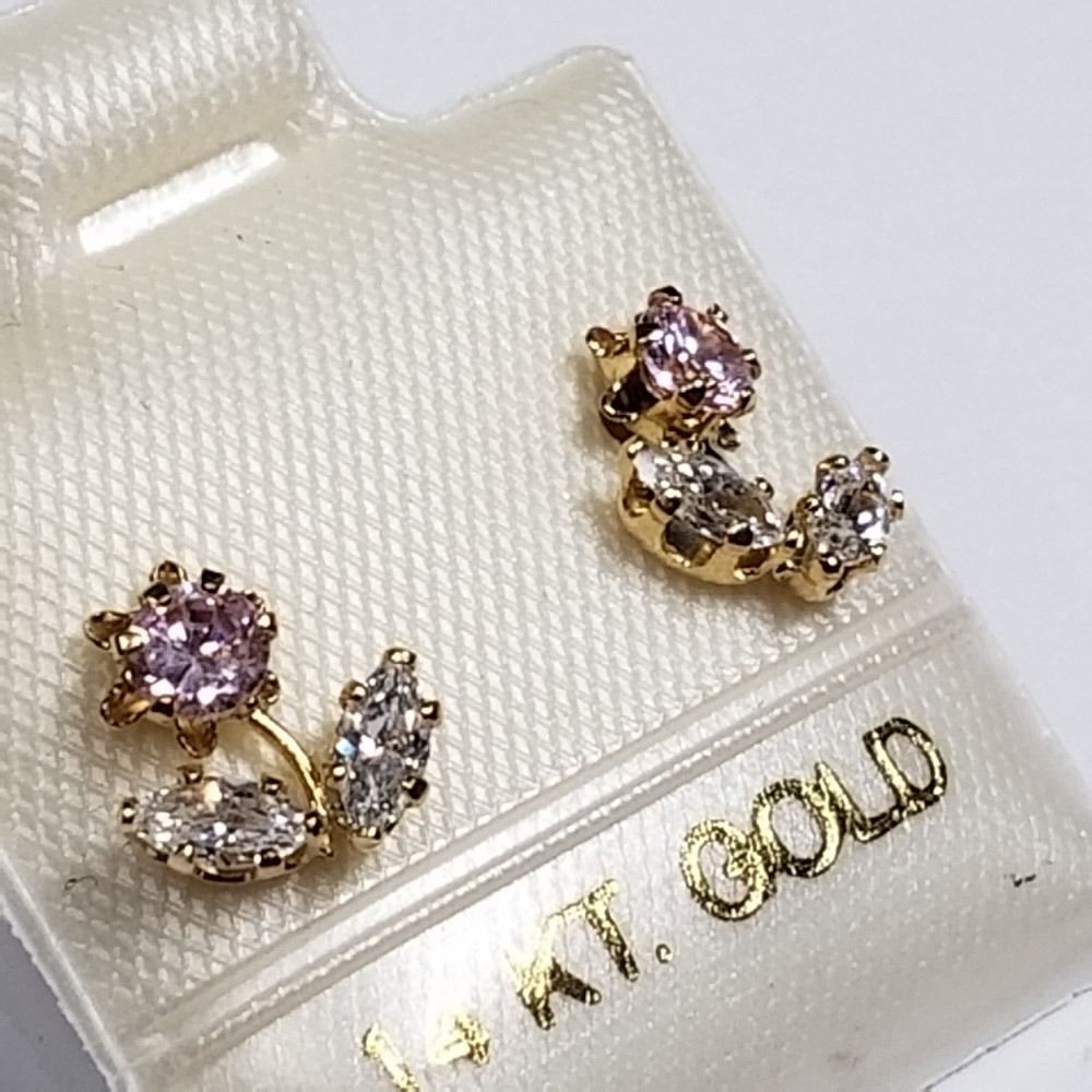 283 - JT38 - 14K YELLOW GOLD CUBIC ZIRCONIA EARRINGS, MADE IN CANADA. JEWELRY