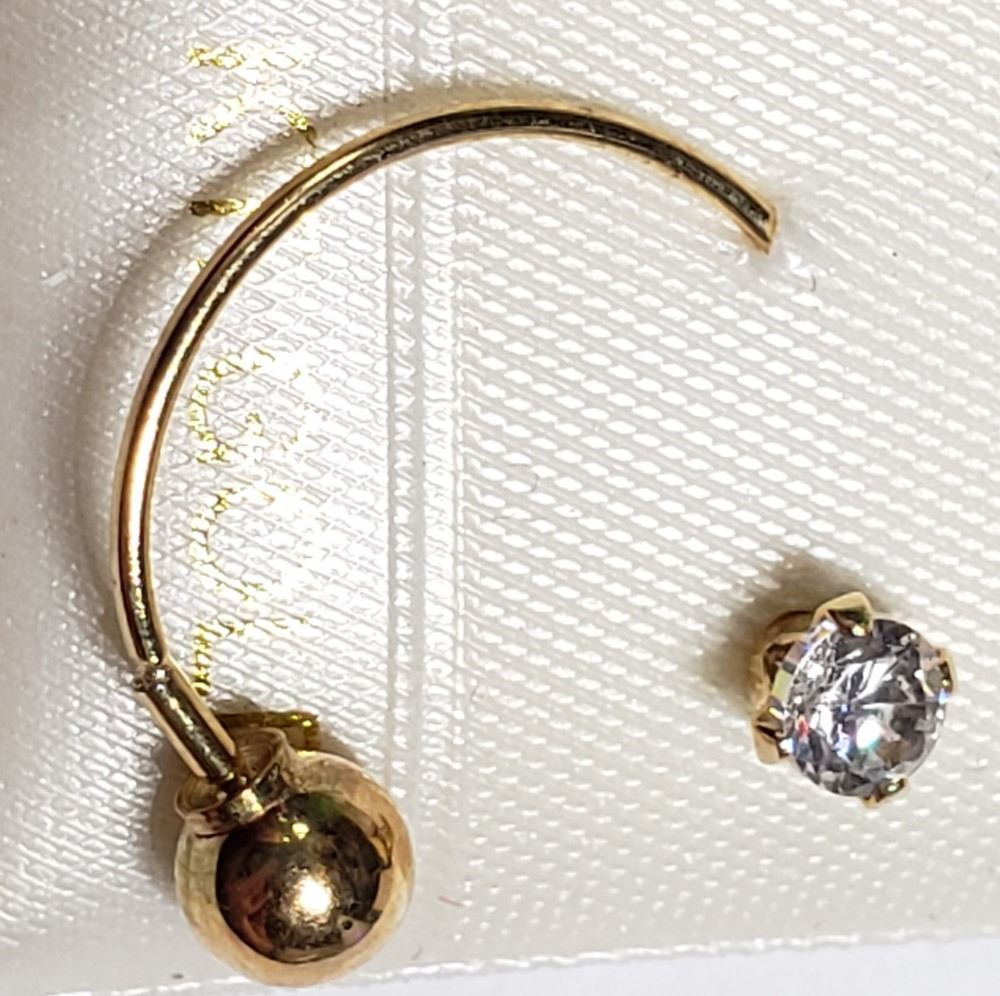 227 - JT37 - 14K YELLOW GOLD CZ BELLY BUTTON RING, MADE IN CANADA. JEWELRY