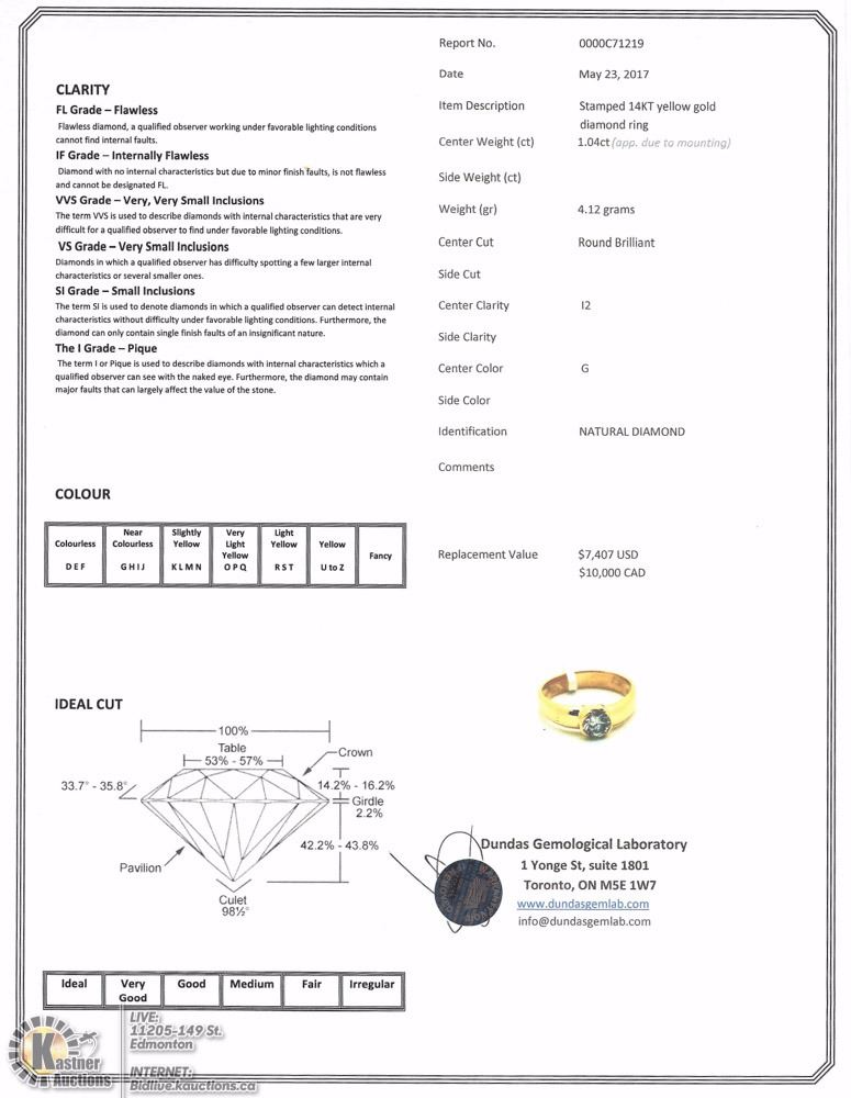 ITEM#50 - AC3: 14K YELLOW GOLD DIAMOND(1.04CT) HEAVY RING (APPROX. 4.12G) SIZE:8.5 W/ COA - SUGGESTED REPLACEMENT VALUE $10,000.00