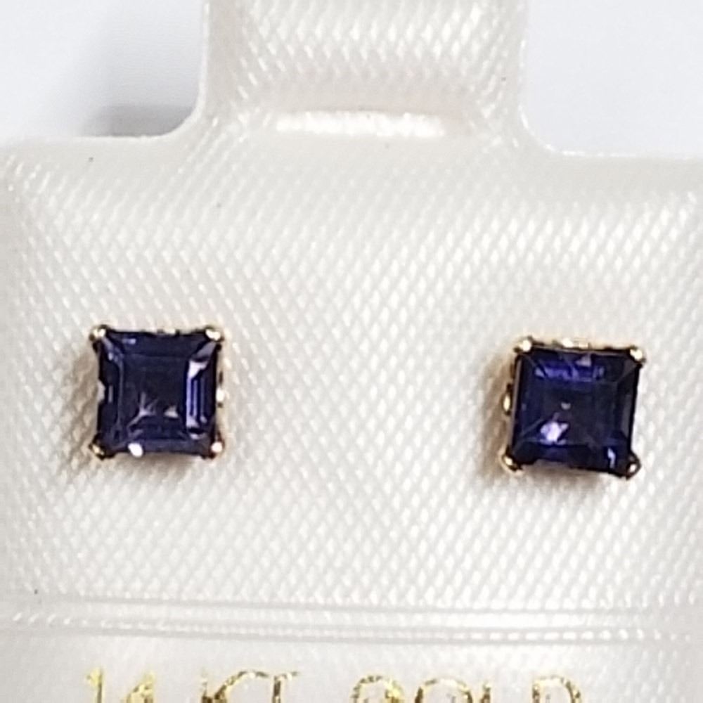 285 - JT38 - 14K YELLOW GOLD IOLITE(0.75CTS) EARRINGS, MADE IN CANADA. JEWELRY