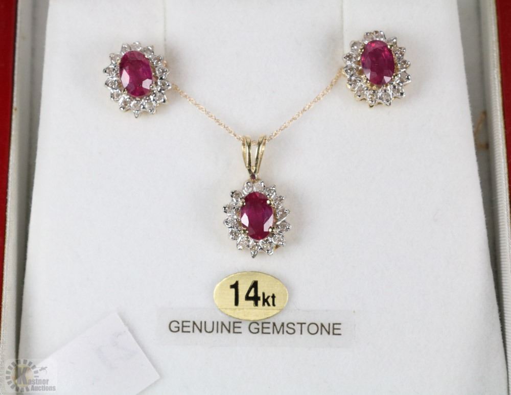 FANCY PENDANT WITH 14K YELLOW GOLD MATCHING EARRINGS - COMES WITH COA SUGGESTED REPLACEMENT VALUE $5400