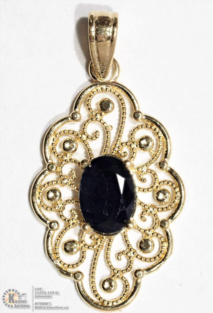 14-NT32- 14K YELLOW GOLD SAPPHIRE (0.60CT) ANTIQUE STYLE FILIGREE PENDANT W/COA. SUGGESTED REPLACEMENT VALUE $2000.00