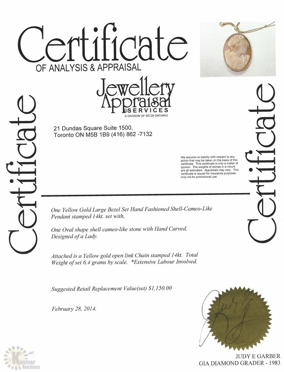 W/ COA - SUGGESTED REPLACEMENT VALUE $1,150.00
