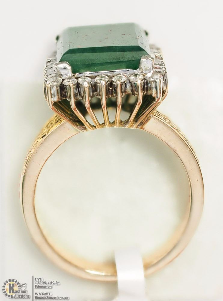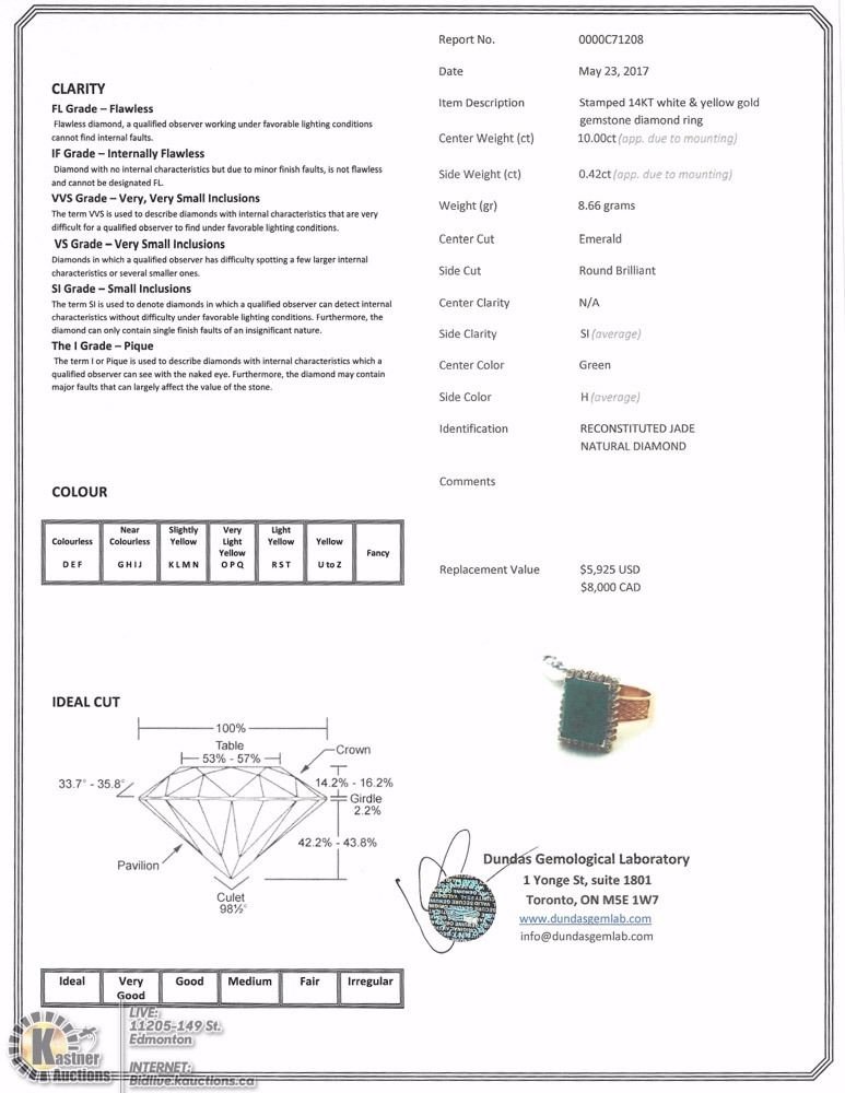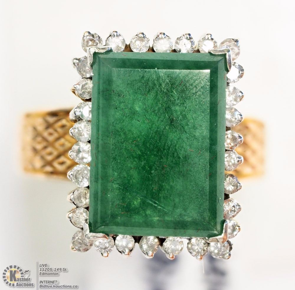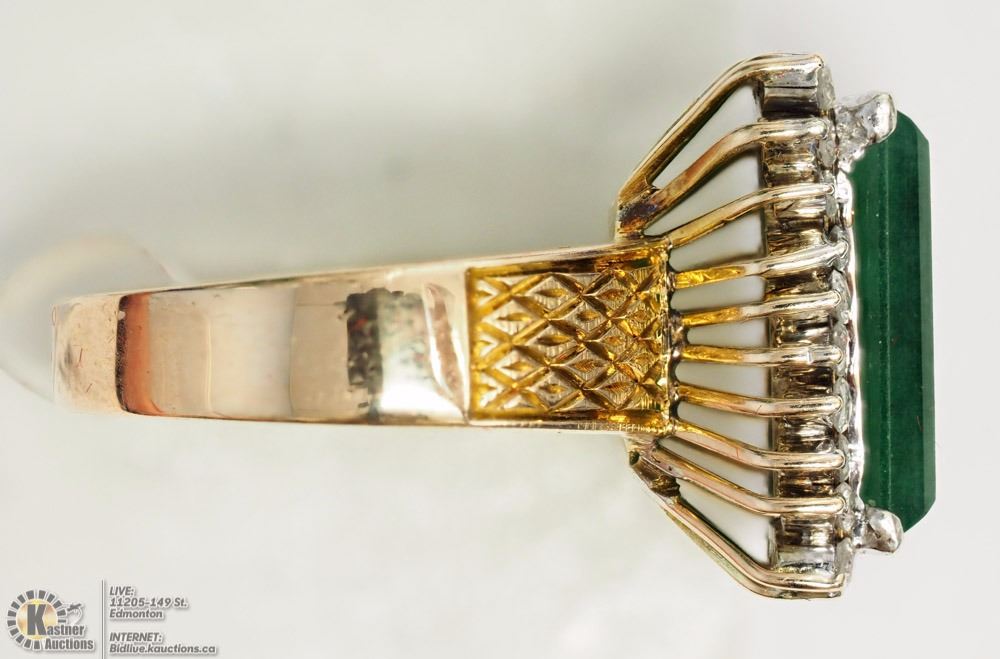 ITEM#49 - AC3: 14K YELLOW-WHITE GOLD RECONSTITUTED JADE & DIAMOND(0.42CT) HEAVY RING (APPROX. 8.66G) SIZE:7 W/ COA - SUGGESTED REPLACEMENT VALUE $8,000.00