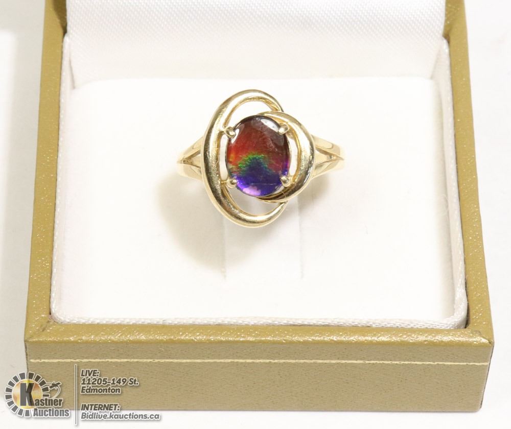 14KT & AMMOLITE "ROSALIND" OPEN WORK RING SZ 6