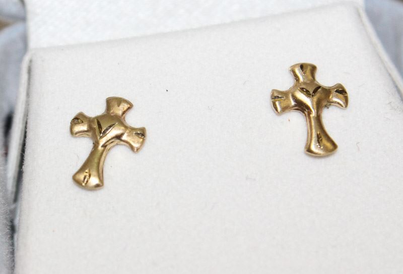 14KT GOLD CROSS EARRINGS WITH SCREW BACKS