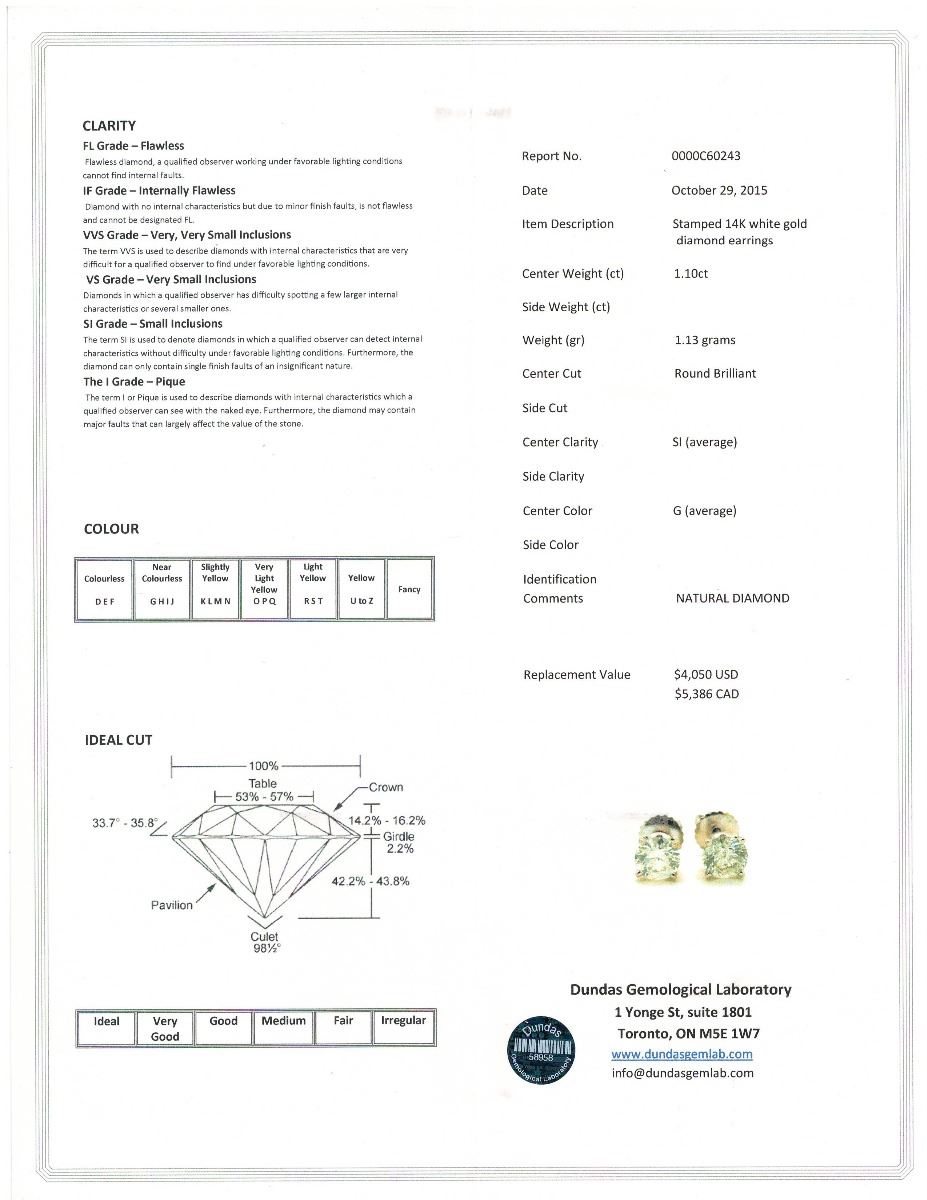 WHITE GOLD EARRINGS SET WITH 2 BRILLIANT DIAMONDS (1.10CT)