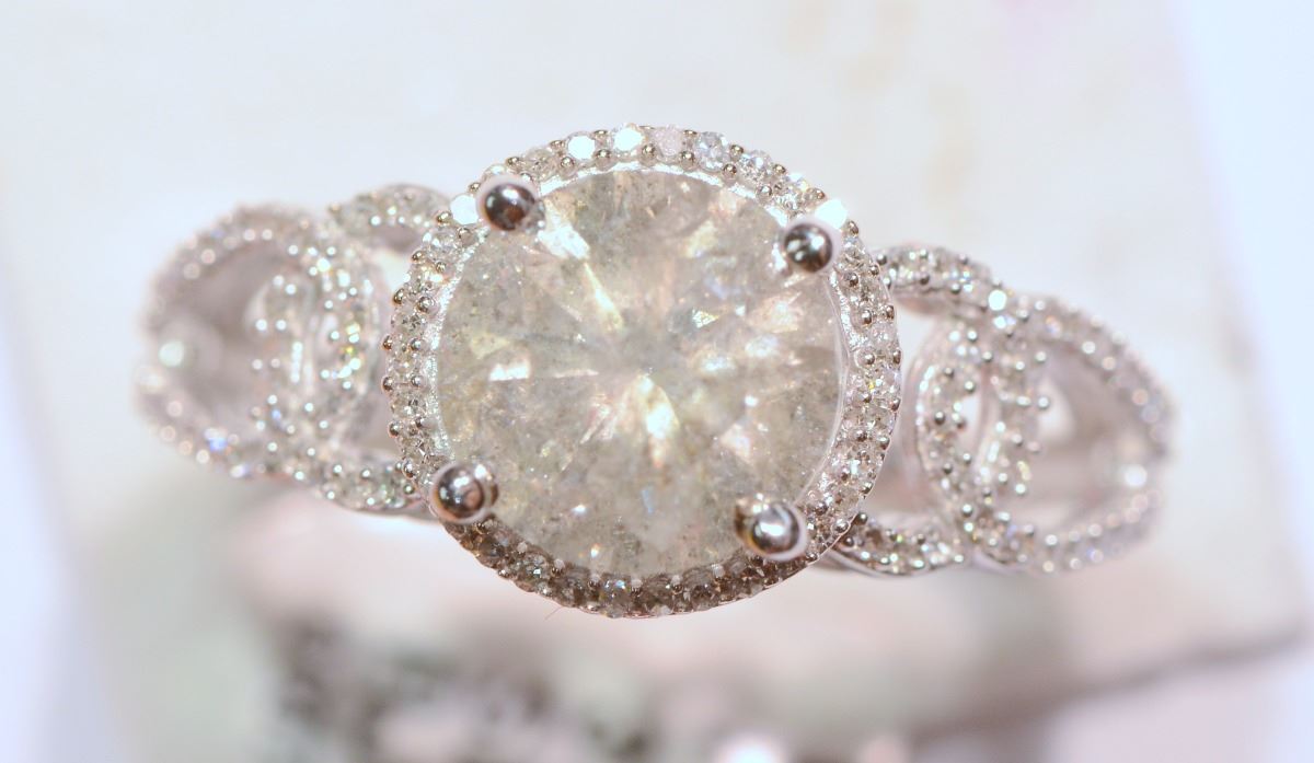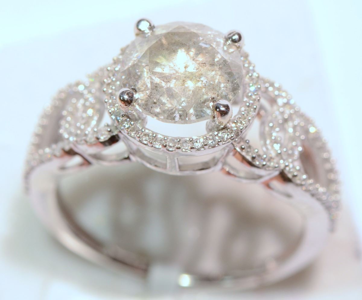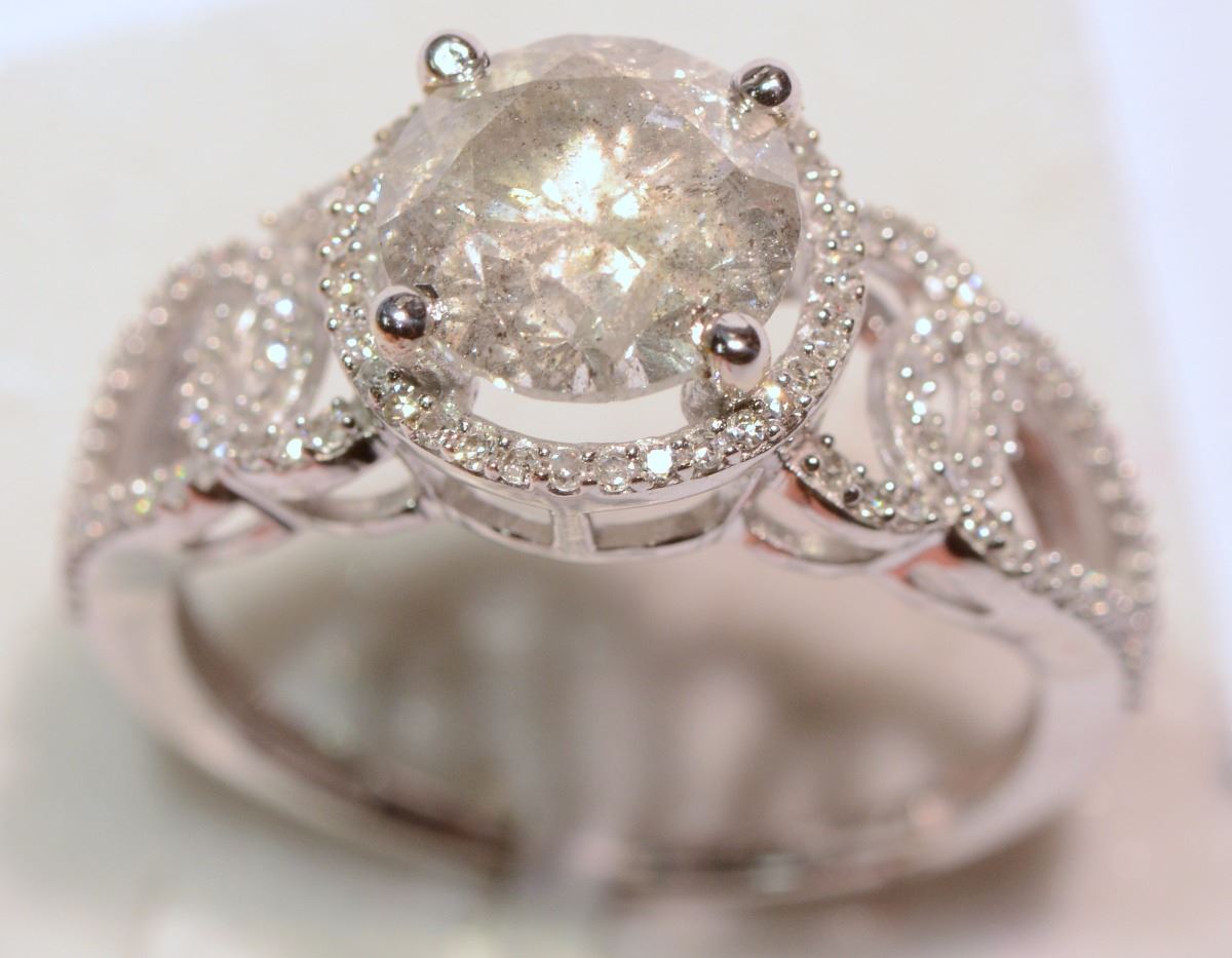 WHITE GOLD RING (WITH MUSIC BOX) WITH 1 BRILLIANT CENTERED DIAMOND (2.15CT) AND 108 SURROUNDING DIAMONDS