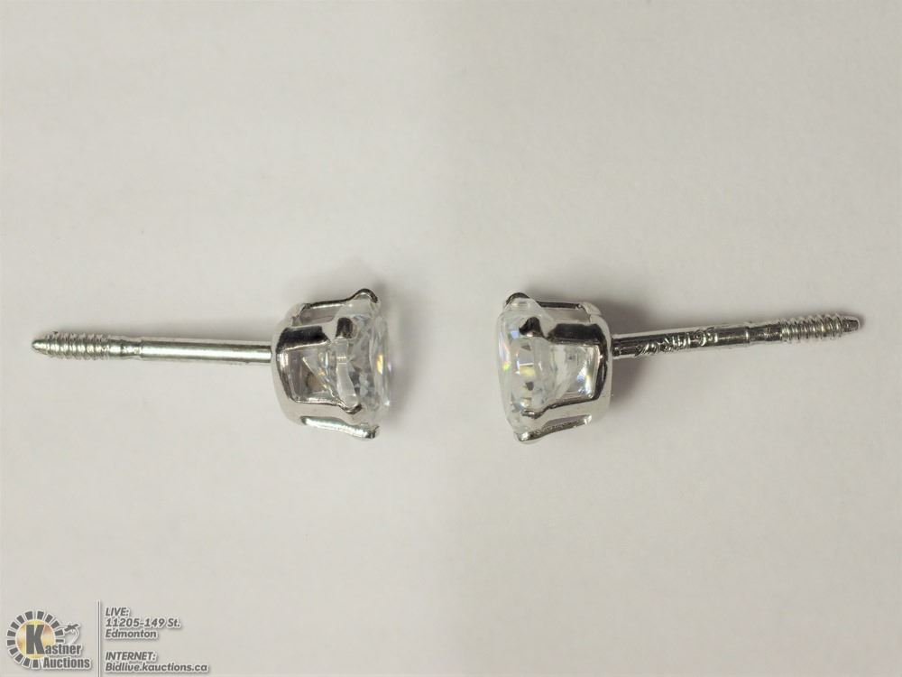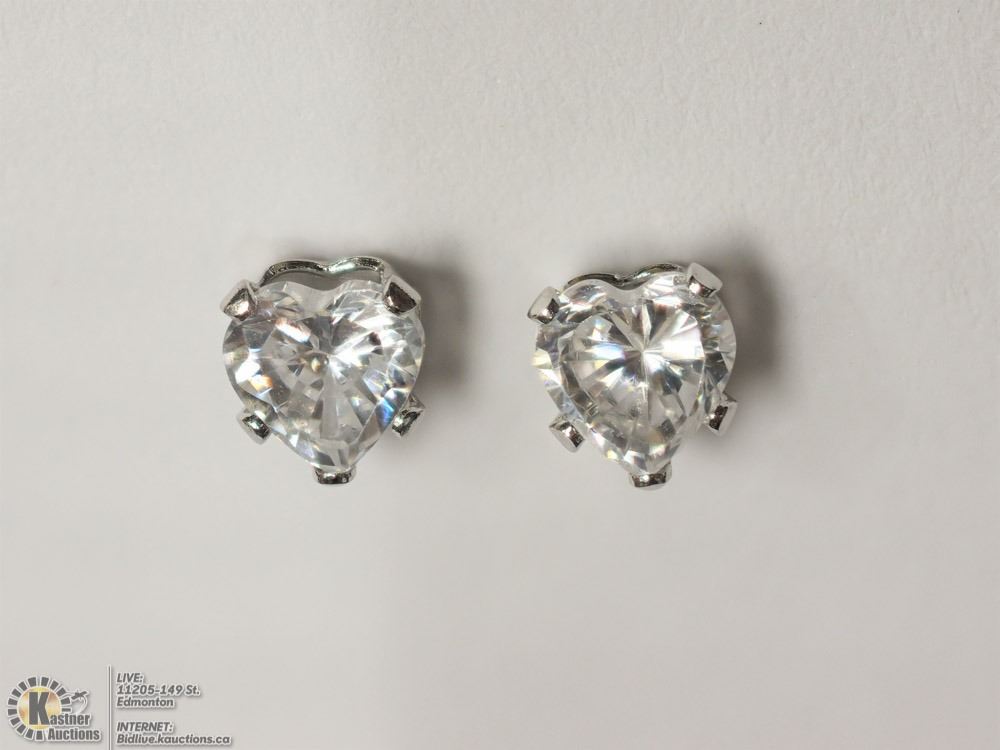 (#31- NN3):14KT WHITE GOLD CUBIC ZIRCONIA HEART SHAPED EARRINGS WITH 10KT GOLD BACKINGS
