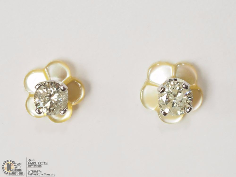 (#43- NN3):14KT WHITE GOLD DIAMOND(0.10CT)EARRINGS WITH MOTHER OF PEARL JACKETS MSRP $500.00