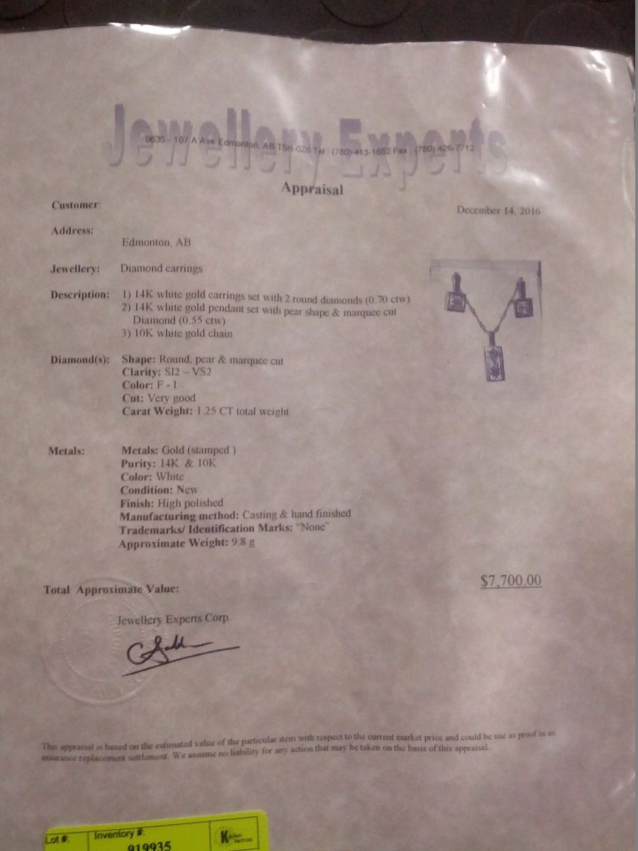 FROM LOCAL APPRAISER . SUGGESTED REPLACEMENT VALUE $7700.00
