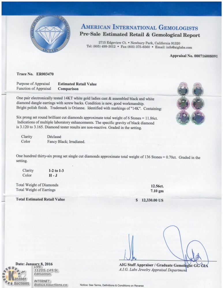 DANGLE EARRINGS WITH SCREWBACKS AND COA. 12.56TCW. SUGGESTED REPLACEMENT VALUE $12,330.00 USD