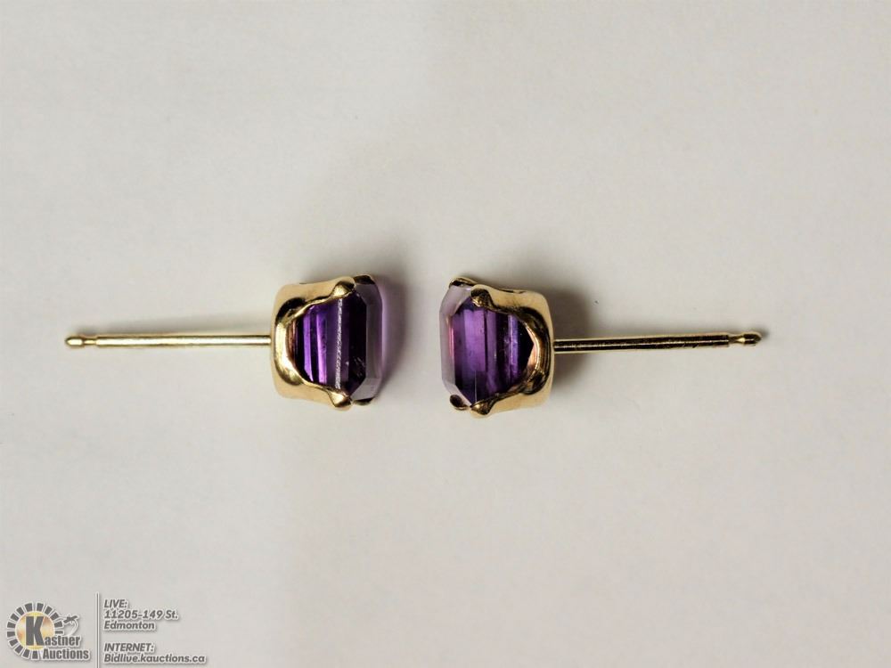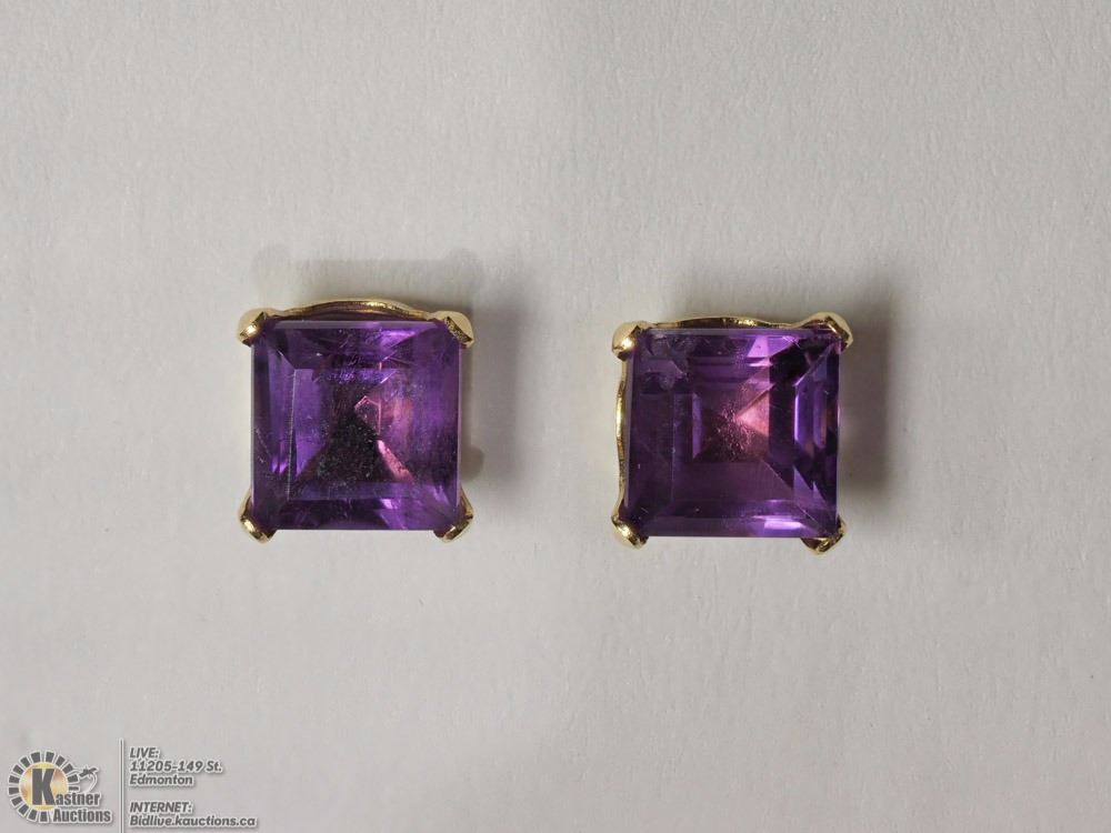 (#2- NN3):14KT YELLOW GOLD AMETHYST EARRINGS